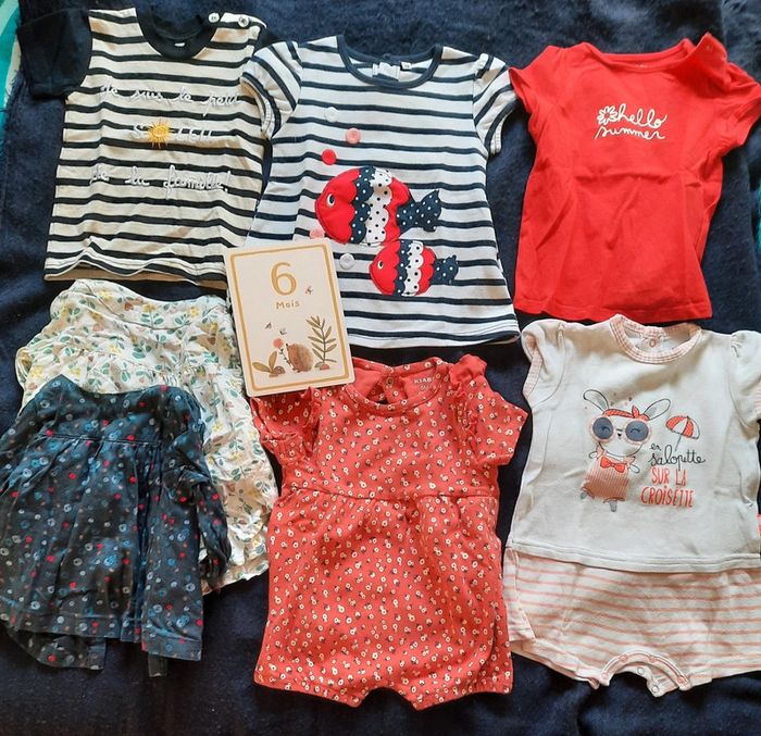 Lot de vêtements fille taille 6 mois 3 T-shirts 2 barboteuses 2 blouses
