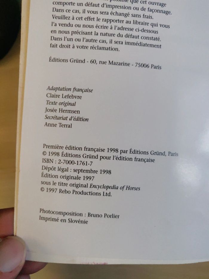 Livre L'univers des chevaux - 311 pages En bon état général, un peu corné car il a été lu et est déjà ancien, le livre datant de 1998, voir photos Le livre à vendre est celui des photos Envoi soigné