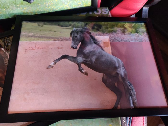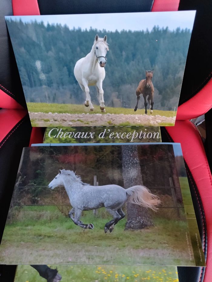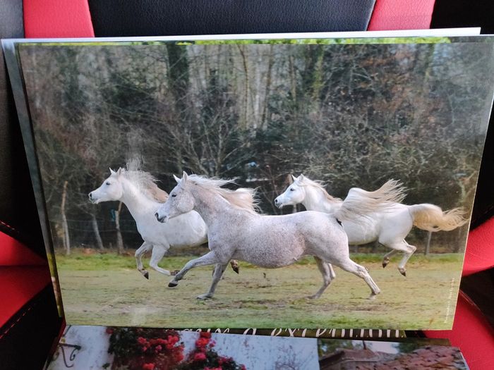 Coffret 12 photos chevaux 3 cadres et 1 livre Photos pour cadres 22*31 cm sur papier photo. 3 cadres compris dans le coffret En parfait état. Envoi soigné