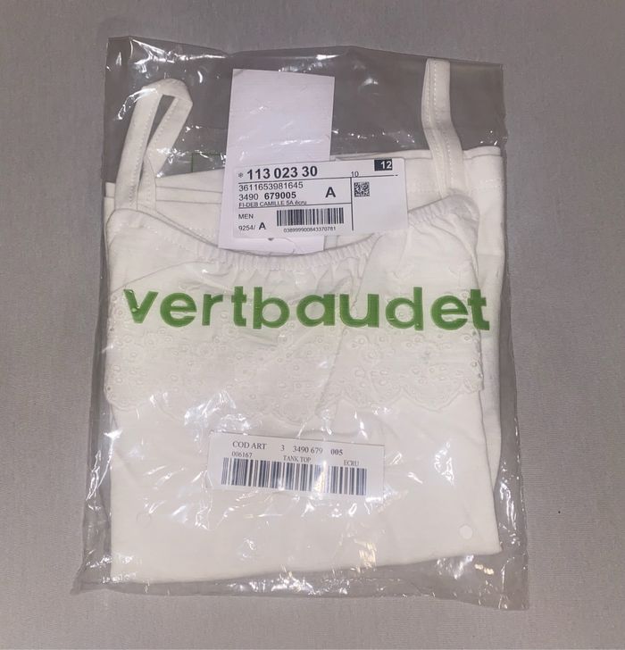 Neuf dans son emballage Ivoire bretelles fines Volants brodés