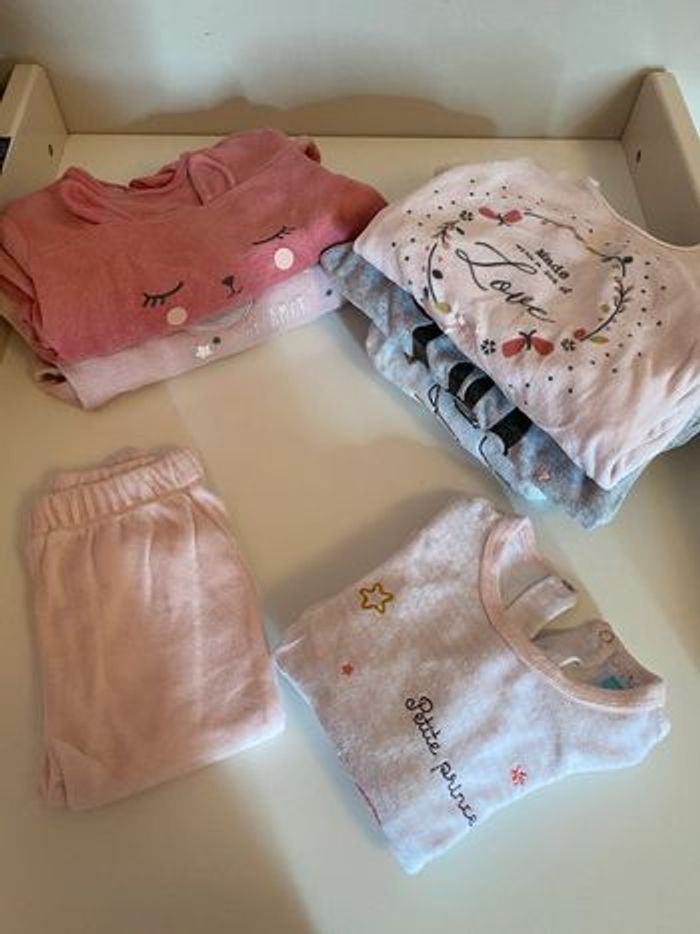 Lot de 6 pyjama 12mois. Imperfection au niveau des genoux (voir photo)