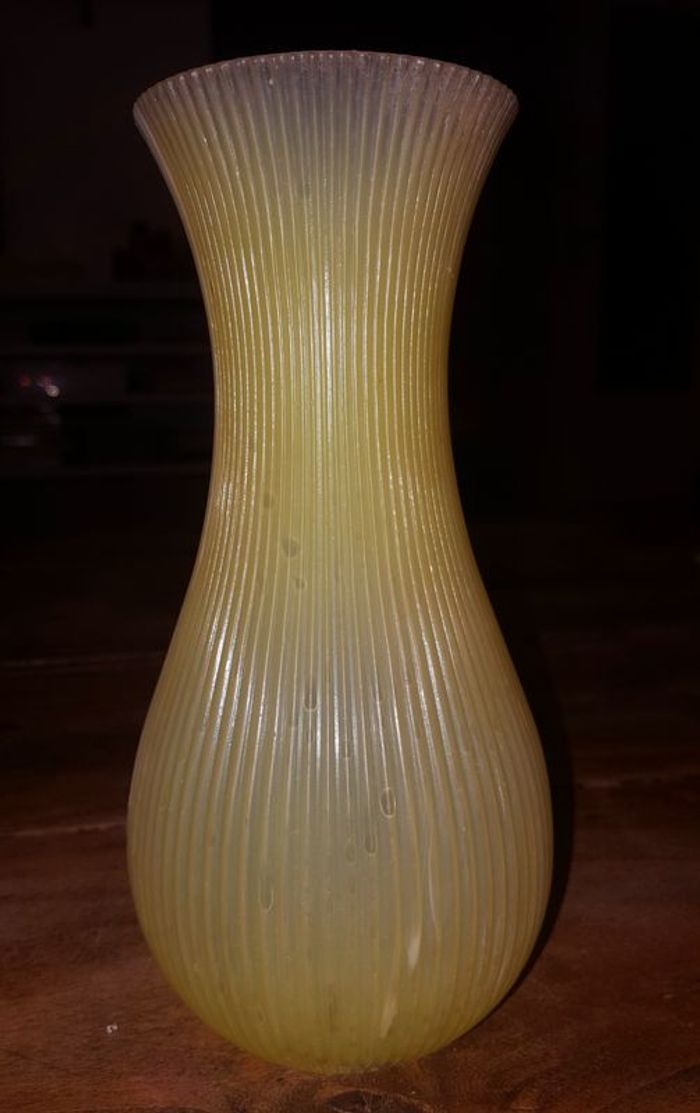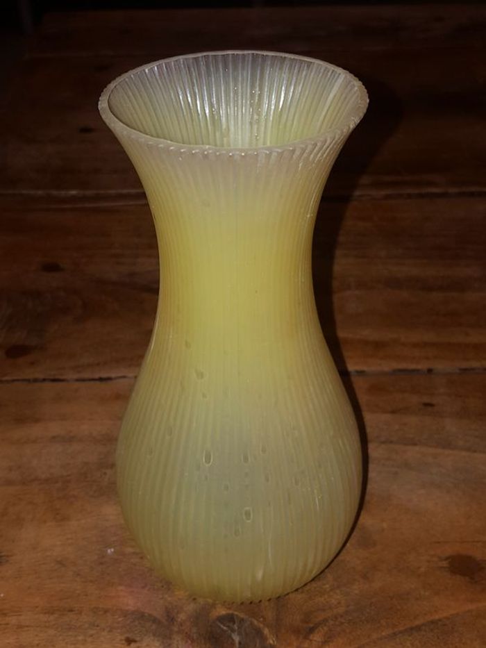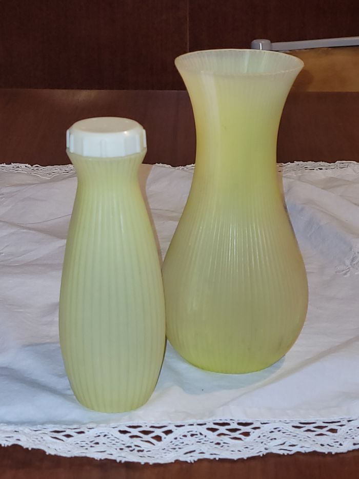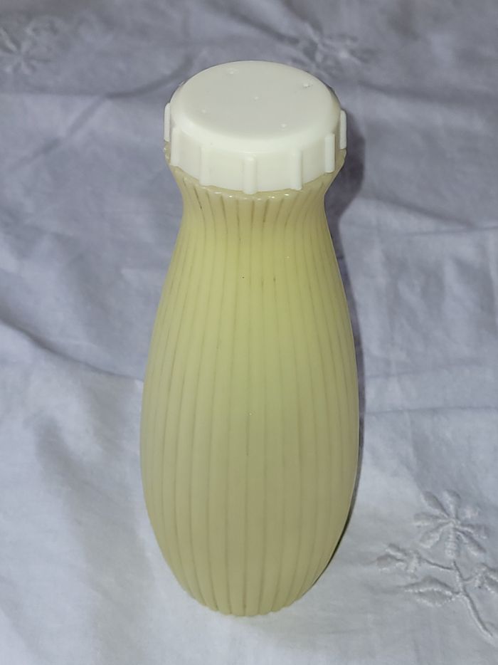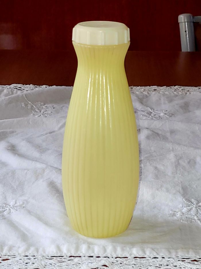 années 60 / 70 en plastique souple rainuré couleur jaune pale dimensions de la carafe : h 18 cm x diam 8,5 cm
