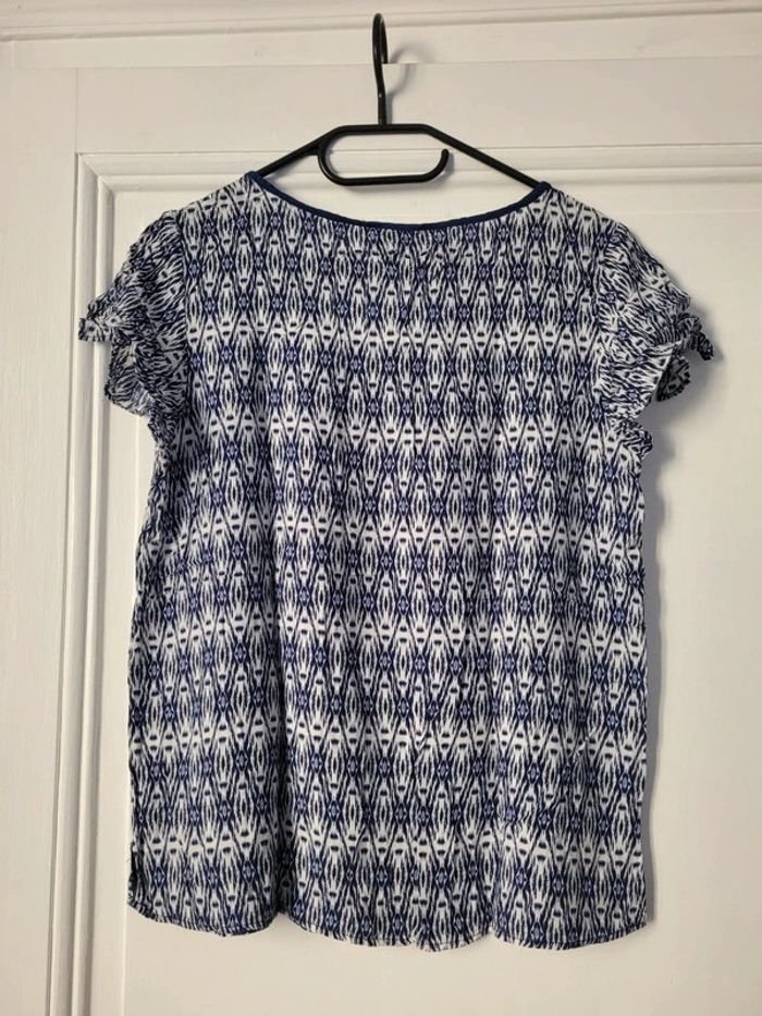 Blouse fluide manches courtes blanche et bleue Etam T36 - photo numéro 3