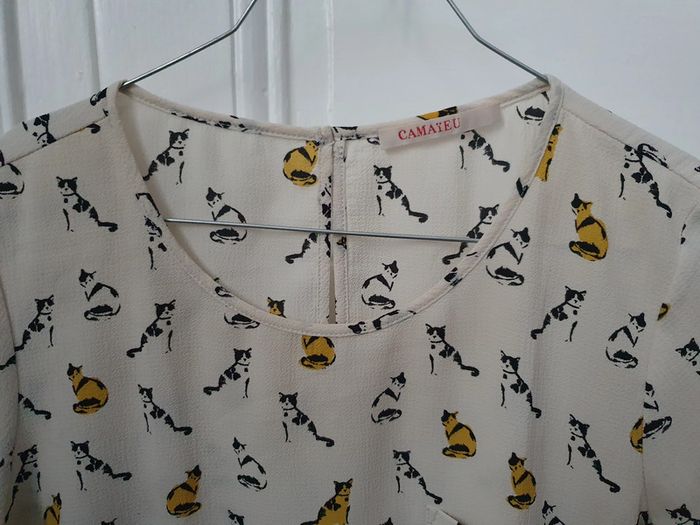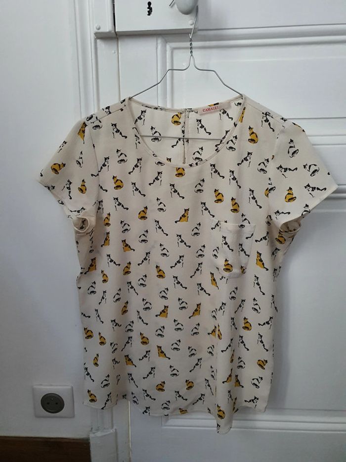 Blouse manches courtes motifs chats Camaïeu T36 - photo numéro 1
