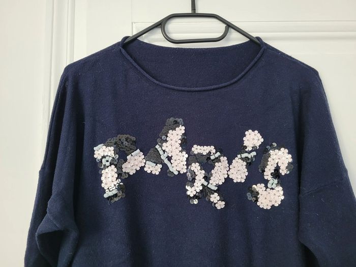 Pull bleu marine doux à sequins Paris Taille L - photo numéro 2