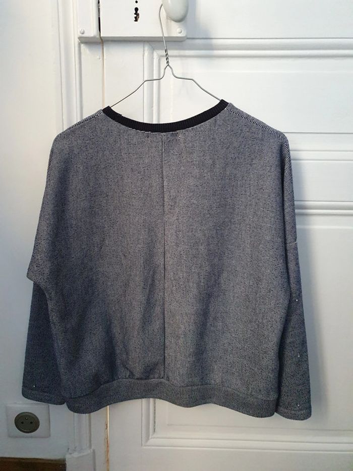 Sweat rayé bleu et blanc avec perles brillantes Millénium - photo numéro 3
