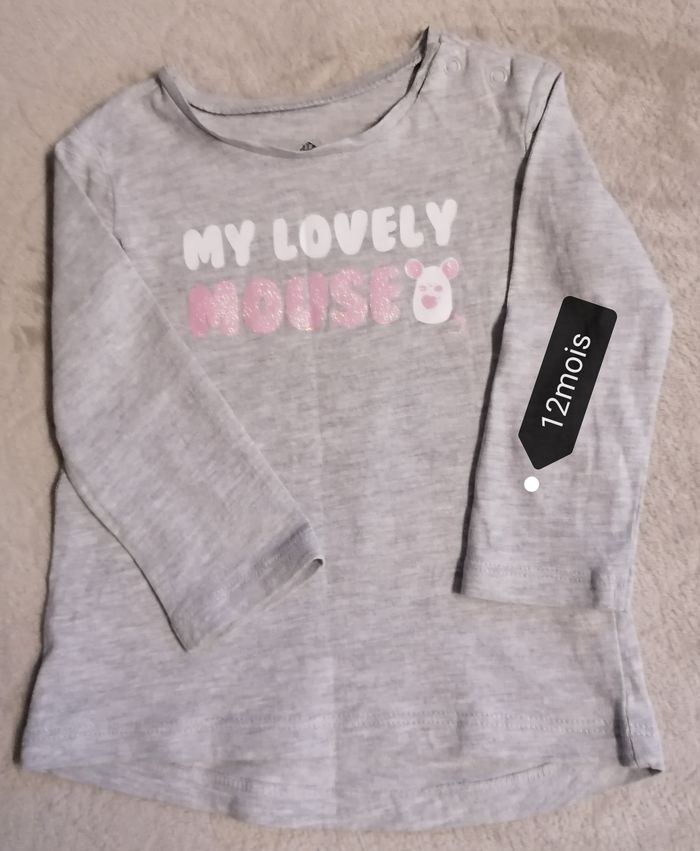 T. Shirts Manche longue filles Marque grain de blé Age 12mois (74cm) Couleur gris 2 bouton clipses niveau épaule Porté, aucune tache 2€