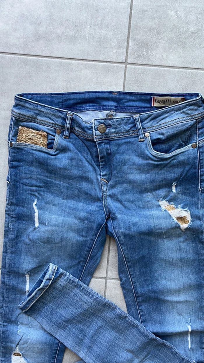 Jeans kaporal taille 28/32 Slim Très légèrement usé au niveau des strass à l’arrière