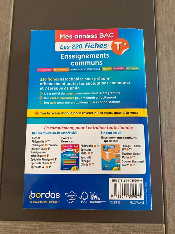 Livre les 220 fiches de terminale pour les enseignements communs, En très bon état, Fiche détachable à l’intérieur avec cartes mentales, Pour plus de renseignements me contacter ;)