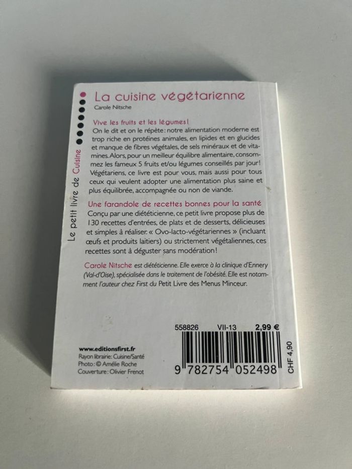 Livre la cuisine végétarienne En très bon état C’est un petit livre de poche de 12cm de 148 pages Pour plus de renseignements me contacter ;)