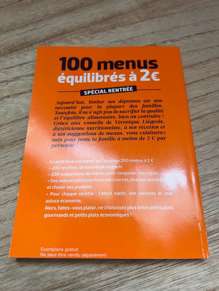 100 menus équilibrés à 2€ 128 pages En très bon état Pour plus de renseignements me contacter ;)