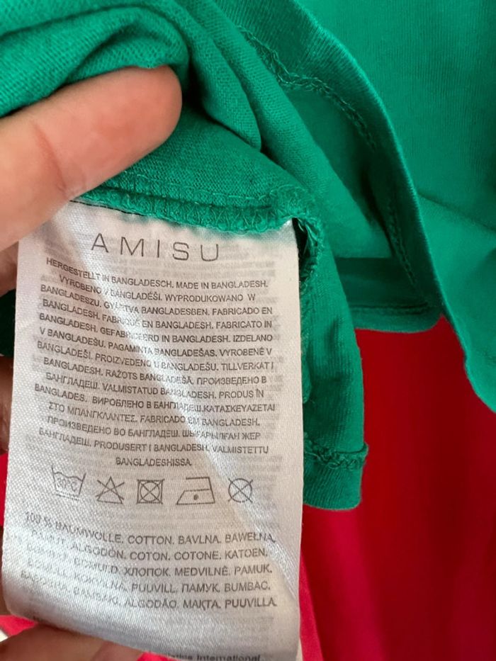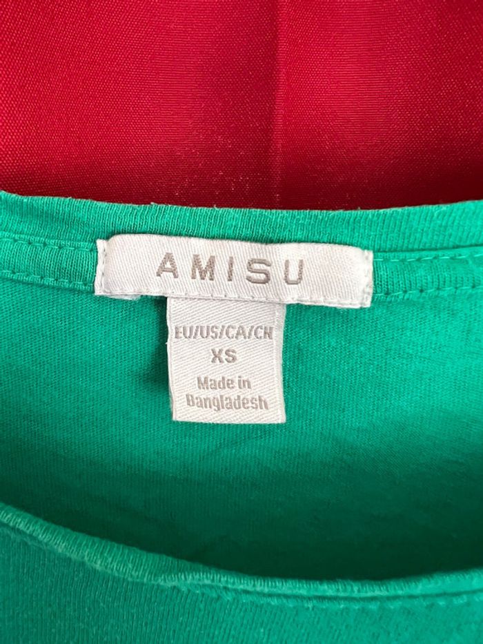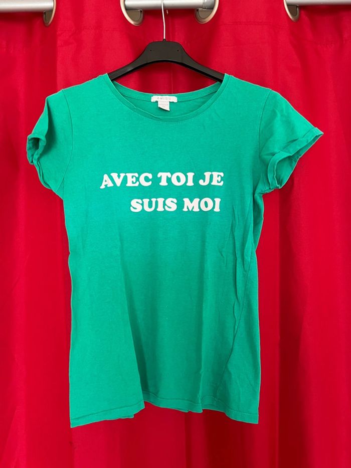 T-shirt vert « Avec toi je suis moi » En très bon état Taille XS Marque Amisu Pour plus de renseignements me contacter ;)