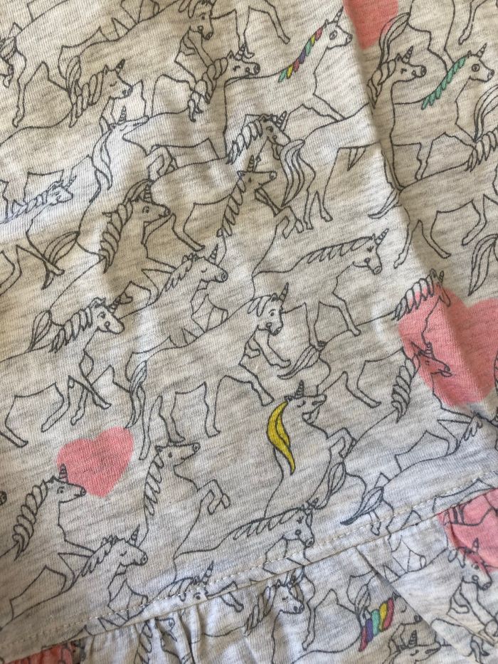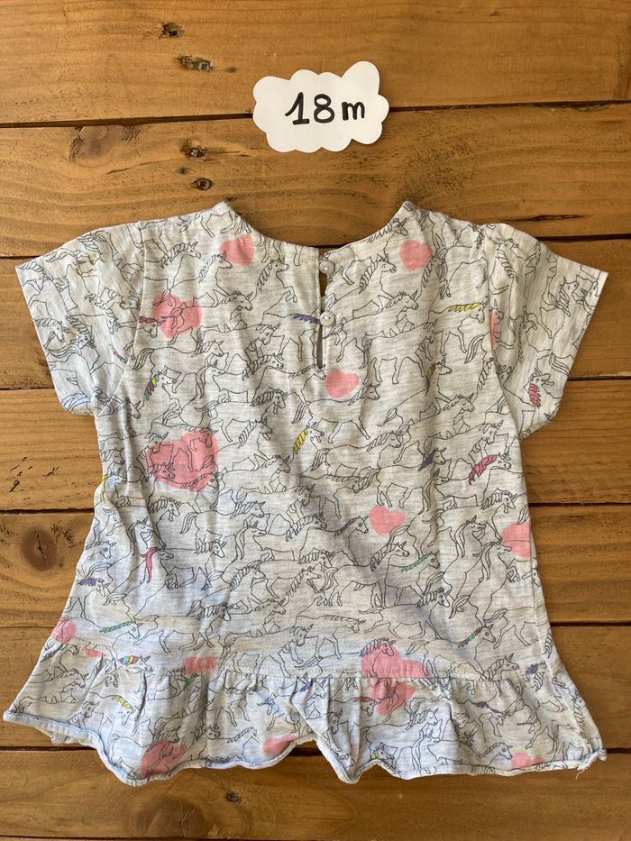 tee shirt été - Marque(s) : zara - Taille(s) indiquée(s) : 18-24 mois / 92cm - morif licorne et cœur - Très bon état : aucune tâche ni trou, bouton nickel