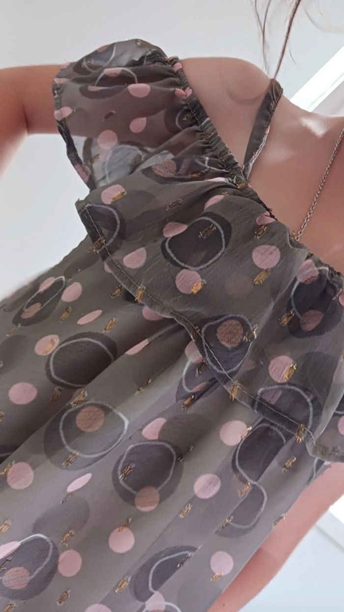 Jolie petit haut type voilage doublé kaki et rose pâle.