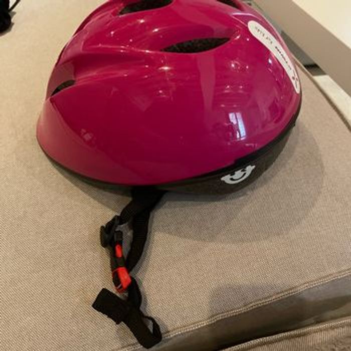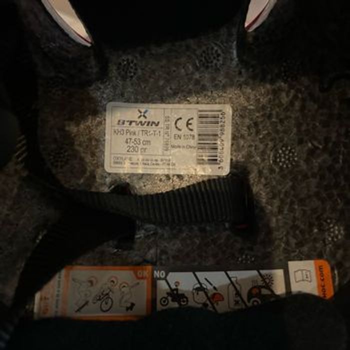 Casque vélo rose BTwin Taille 47-53 cm Très peu servi Très bon état (quelques accrocs durant le stockage)