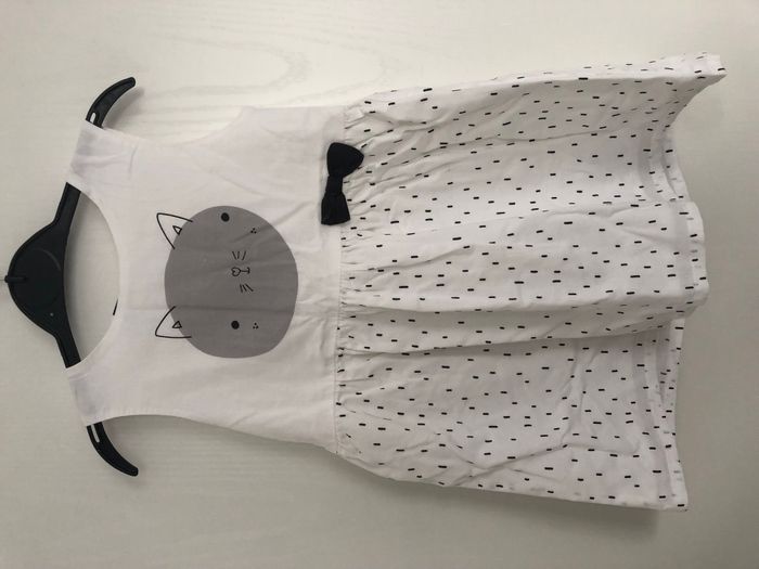 Jolie robe fille sans manches, fermeture bouton à l'arrière Motif chat Légère et agréable à porter Marque Kiabi Taille 24 mois
