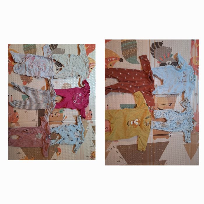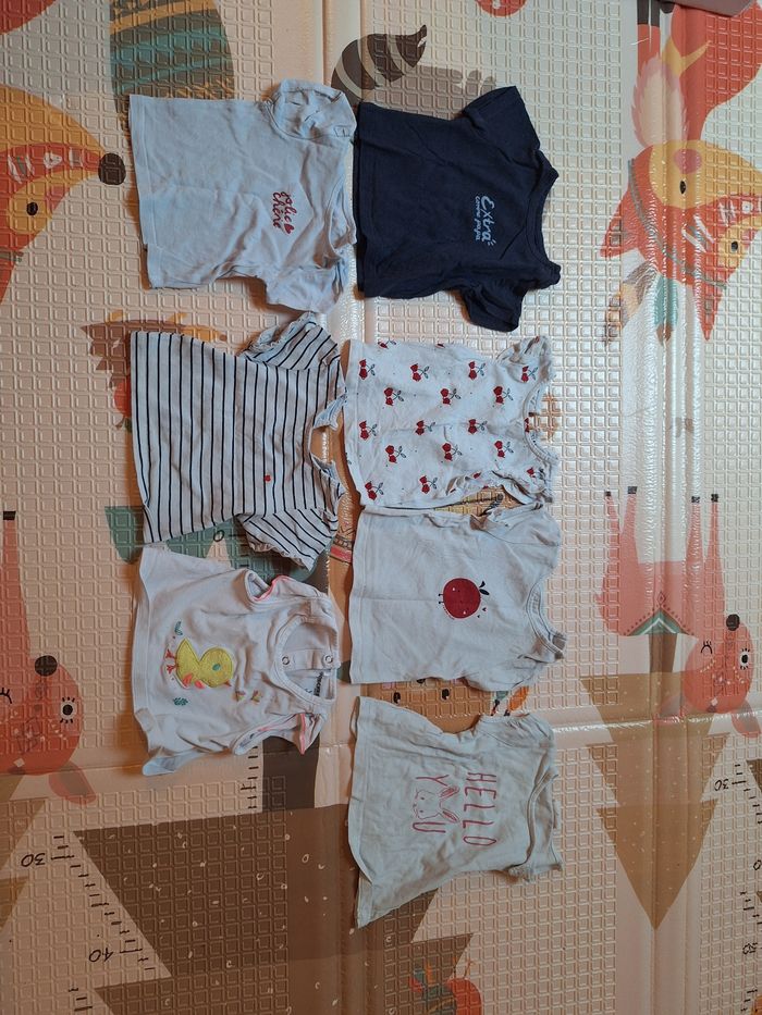 Lot vêtements 1 mois fille - Robes, tee-shirts, tee-shirts manches longues, pantalons, pyjamas, bodys manches courtes et longues, barboteuses...