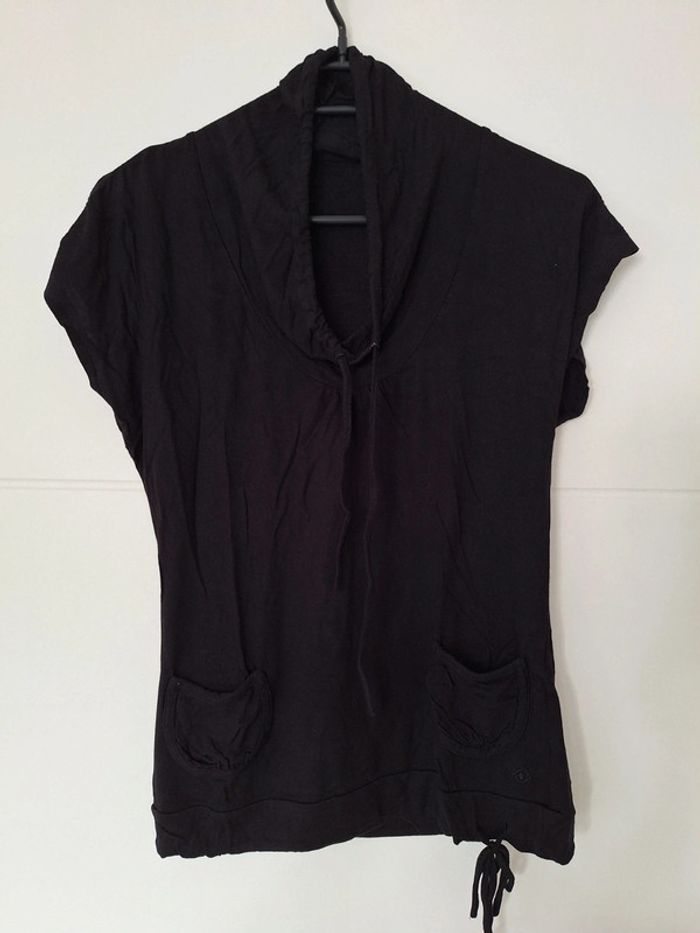 Tee shirt noir avec poches liens de serrage au niveau du col et de la taille #lolamalo50femme38 #lolamalo50femme #teeshirt #noir #bonobo #38