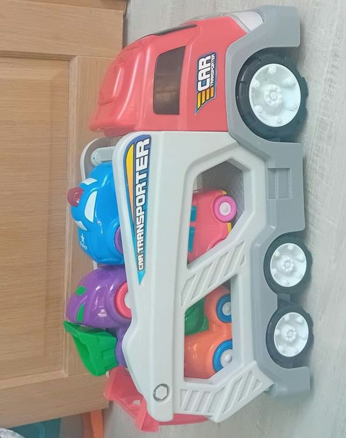 Jouet complet. Un bouton sur le côté allume les phares et fait du bruit.