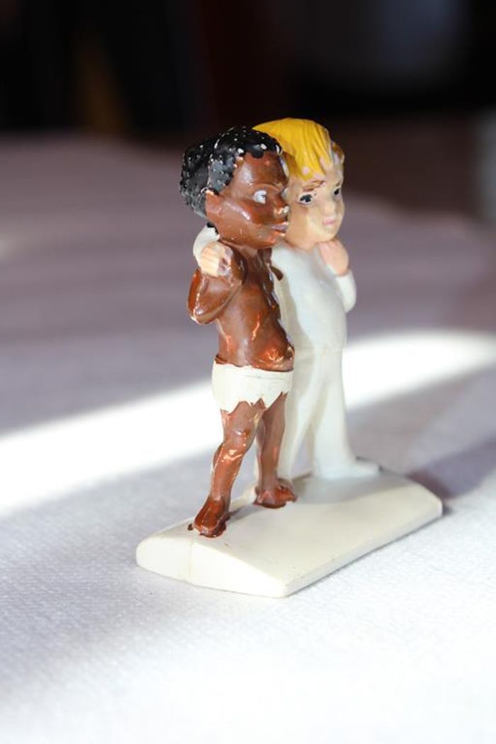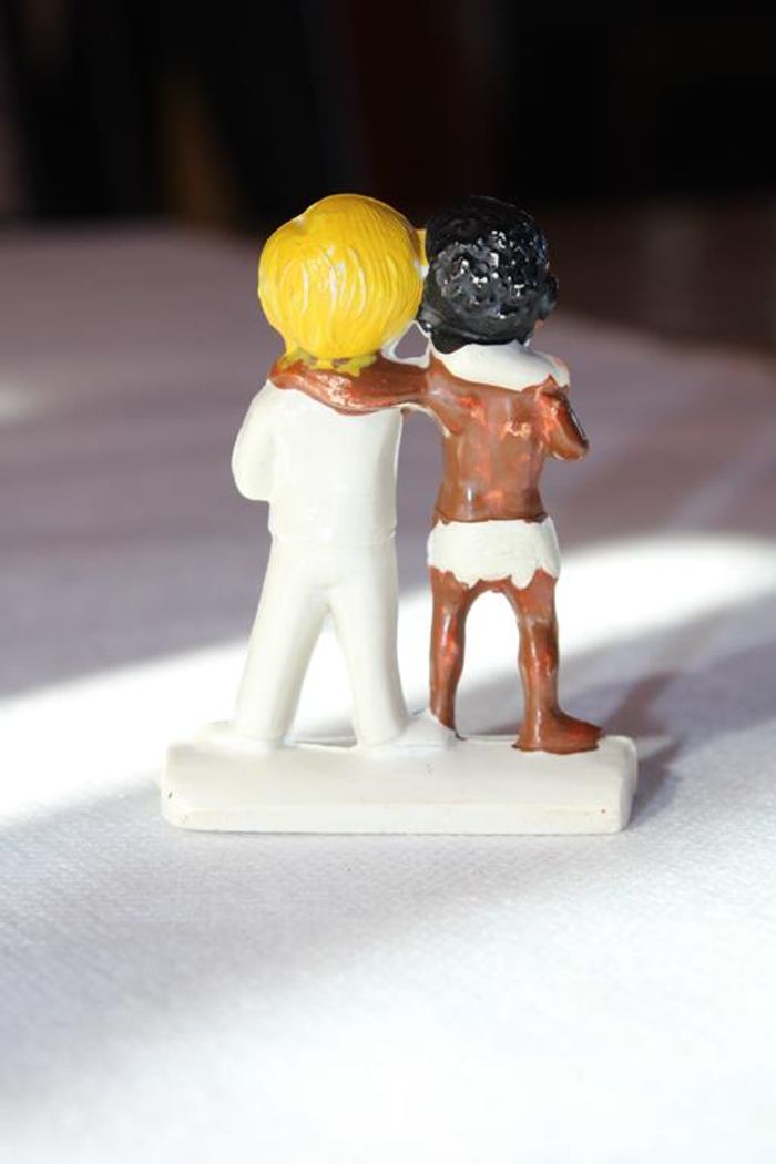 Figurine vintage des années 70 diffusée au moment de la guerre dans le Biaffra. Un stiker manquant sur le socle indiquait " aidons le Biaffra. Elle mesure 5.5 cm En bon état pour son âge, elle a quelques manque de peinture Fabriquée par JIM en France : Marque disparue Réponse rapide. Envoi soigné dans les meilleurs délais