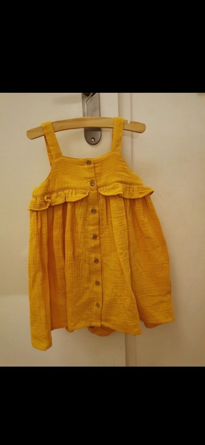 Robe coton moutarde avec bloomer Bout'chou neuve 24 mois