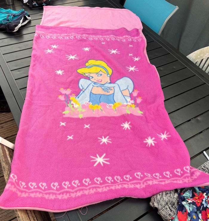 Sac de couchage polaire Disney princesse Cendrillon à fermeture éclaire Servi une dizaine de fois 1,50×75 Usure normale
