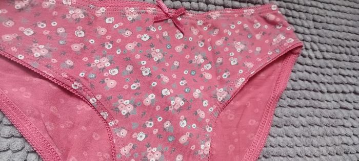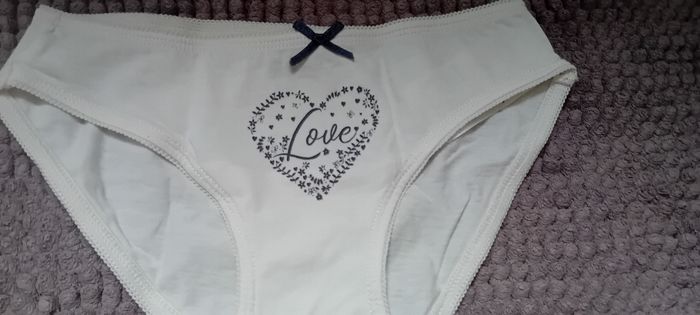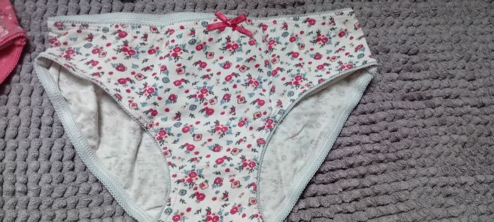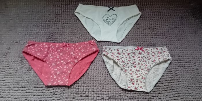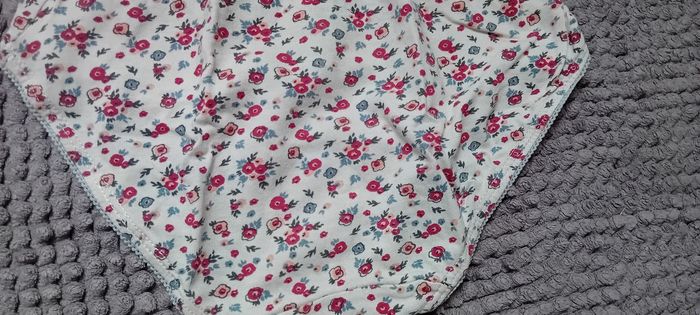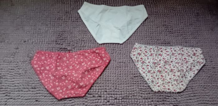 Culottes très peu porté, les 2 fleuries en très bon état, la blanche à une tâche au niveau des fesses.