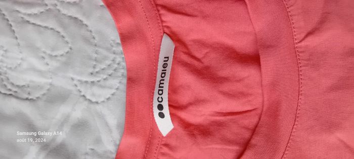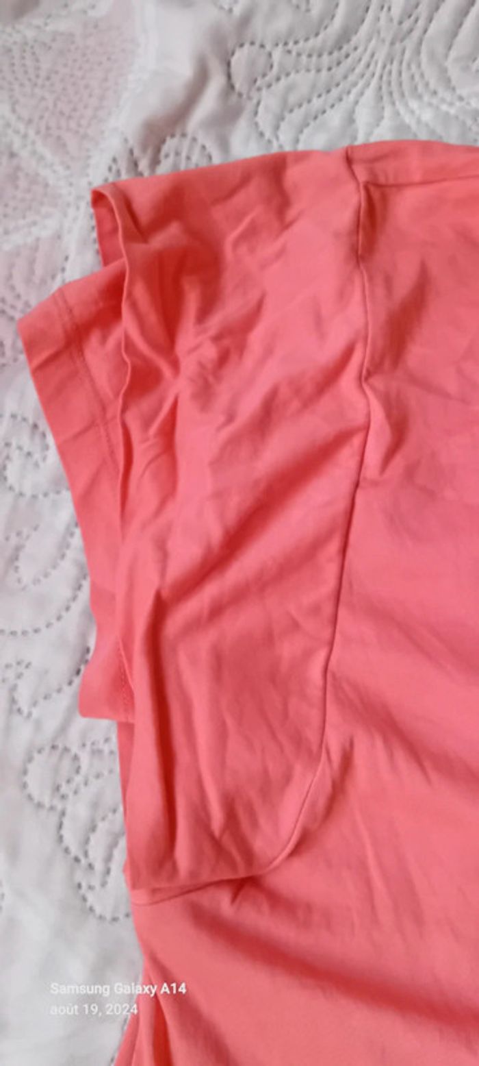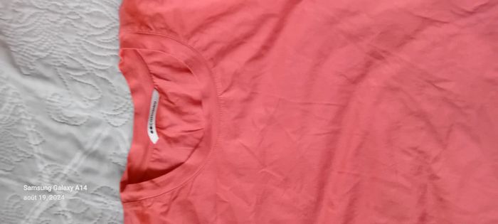 Tee-shirt manches courtes larges et doublées effet superposé col rond longueur couleur rose corail 59 cm largeur aisselles à aisselles 49 cm largeur épaules 38 cm juste porté une ou deux fois comme neuf #midole #midolefemme42 ##midolefemme #femmeXL #femme42 #teeshirtfemmexl #teeshirtfemme42 #camaïeu