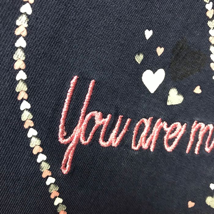 Sous pull bleu marine brodé devant Coeur rose Tâches sur une manche Taille 5 ans Lili Marelle