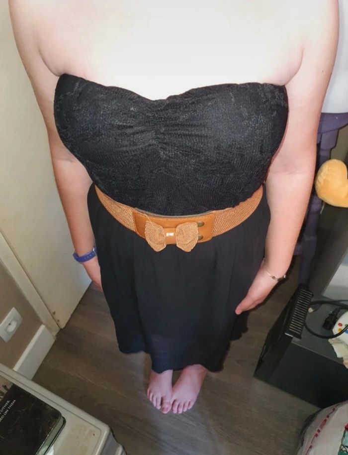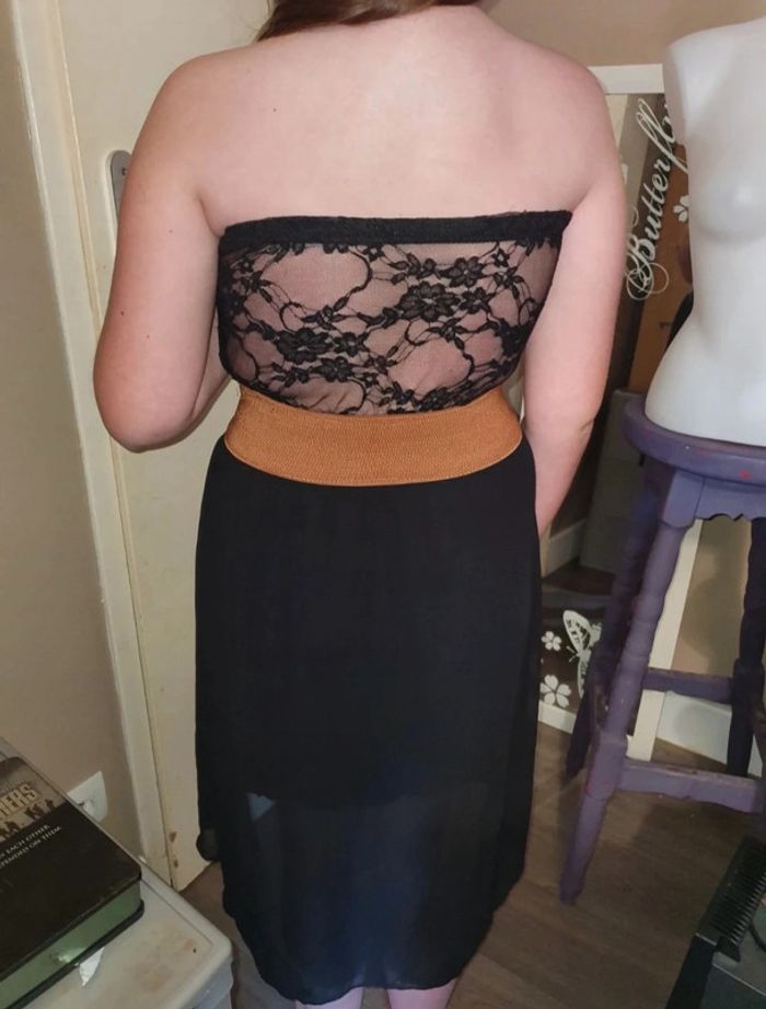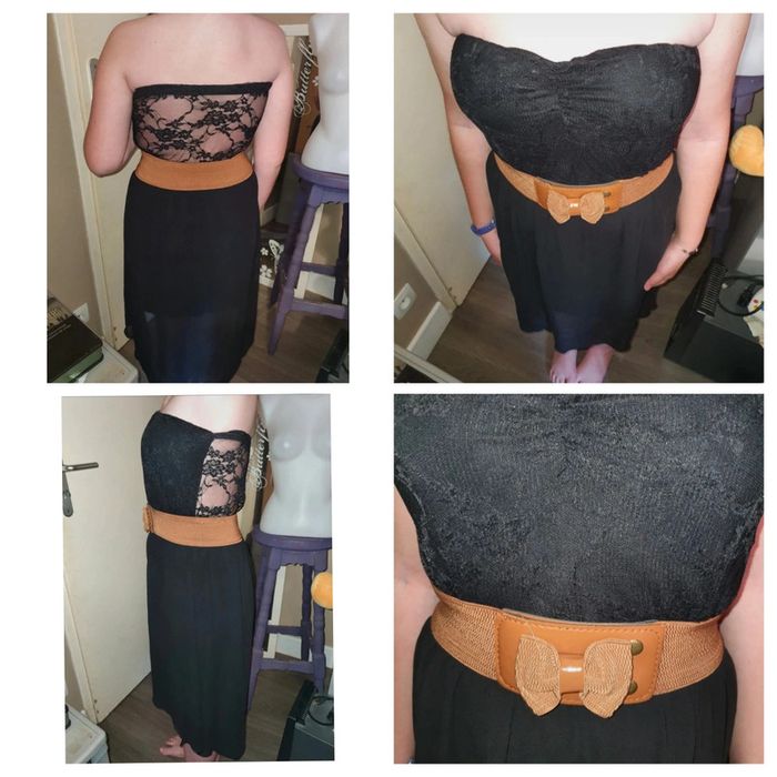 Robe bustier avec dentelle et ceinture intégré. Voilage en bas mais doublé. Coqué niveau poitrine . #A2life_taille36
