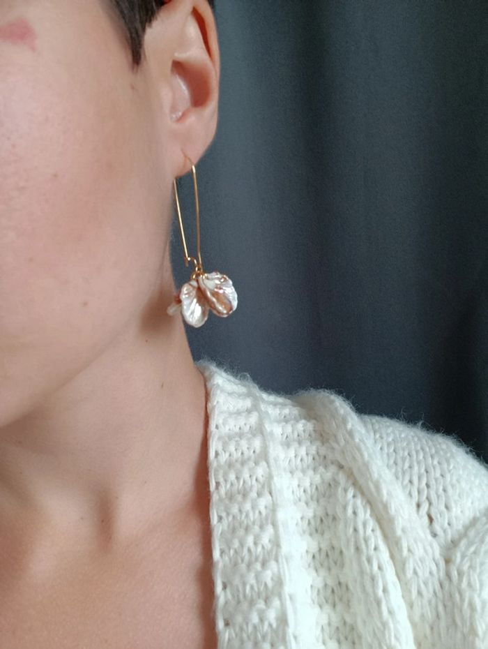 🌞Prix fixe, création 🌞 Jolies créoles longues en acier inoxydable ❤️ Pétales acryliques blanc beige a reflet Superbes portées Inspiration sézane ✨ (D'autres couleurs de dispo, envoyez moi un petit message si vous ne trouvez pas votre bonheur dans mon dressing) ✨ Pour toute demande de lot, m'envoyer un message avec la capture d'écran des articles voulus et je m'en occupe ✨ Envoi rapide et soigné 🤗 Belle découverte ☀️ - Les bijoux en base d'acier inoxydable sont théoriquement résistants à l'eau. Néanmoins, je conseille, pour la durabilité, d'éviter le contact prolongé de vos bijoux fantaisie avec l'eau, le chlore, le parfum, et de les ranger à l'abri du soleil pour une parfaite tenue dans le temps 🤗 - Éviter complètement l'eau pour les bijoux comportant des pierres naturelles, perles de rocailles, acryliques, bois ... - Pour toute question, ou demande, un petit message 🤗 - Abonnez-vous à mon profil vinted pour ne rien louper 👍 #bijouxfantaisie #y2k #cadeaufemme #cadeau #tendance #style #zara #accessoires #acierinoxydable #neuf #vintage #inspiration #sézane