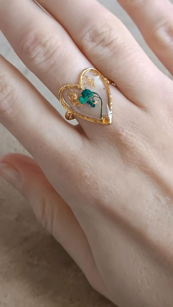 🌞Prix fixe, création 🌞 Superbe bague en acier inoxydable en forme de cœur Résine et fleur bleues séchées 🥰 Ajustable à l'arrière Pour toute demande de lot, m'envoyer un message avec la capture d'écran des articles voulus et je m'en occupe ✨ Envoi rapide et soigné 🤗 Belle découverte ☀️ - Les bijoux en base d'acier inoxydable sont théoriquement résistants à l'eau. Néanmoins, je conseille, pour la durabilité, d'éviter le contact prolongé de vos bijoux fantaisie avec l'eau, le chlore, le parfum, et de les ranger à l'abri du soleil pour une parfaite tenue dans le temps 🤗 - Éviter complètement l'eau pour les bijoux comportant des pierres naturelles, perles de rocailles, acryliques, bois ... - Pour toute question, ou demande, un petit message 🤗 - Abonnez-vous à mon profil vinted pour ne rien louper 👍 #bijouxfantaisie #y2k #cadeaufemme #cadeau #tendance #style #zara #accessoires #acierinoxydable #neuf #vintage #inspiration #sézane