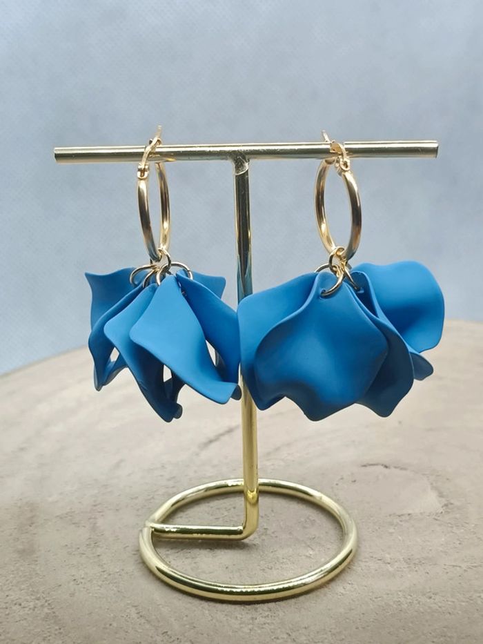 🌞Prix fixe, création 🌞 Jolies créoles en acier inoxydable Anneau de 2cm Pétales de fleurs bleues Matt Superbes portées Inspiration sézane ✨ (D'autres couleurs de dispo, envoyez moi un petit message si vous ne trouvez pas votre bonheur dans mon dressing) ✨ Pour toute demande de lot, m'envoyer un message avec la capture d'écran des articles voulus et je m'en occupe ✨ Envoi rapide et soigné 🤗 Belle découverte ☀️ - Les bijoux en base d'acier inoxydable sont théoriquement résistants à l'eau. Néanmoins, je conseille, pour la durabilité, d'éviter le contact prolongé de vos bijoux fantaisie avec l'eau, le chlore, le parfum, et de les ranger à l'abri du soleil pour une parfaite tenue dans le temps 🤗 - Éviter complètement l'eau pour les bijoux comportant des pierres naturelles, perles de rocailles, acryliques, bois ... - Pour toute question, ou demande, un petit message 🤗 - Abonnez-vous à mon profil vinted pour ne rien louper 👍 #bijouxfantaisie #y2k #cadeaufemme #cadeau #tendance #style #zara #accessoires #acierinoxydable #neuf #vintage #inspiration #sézane