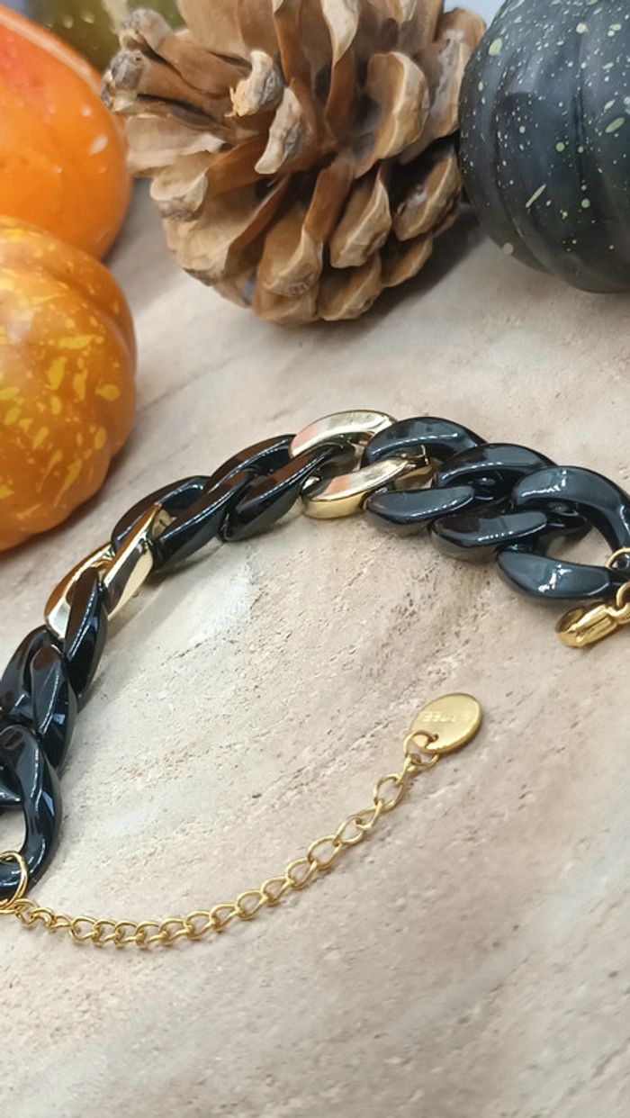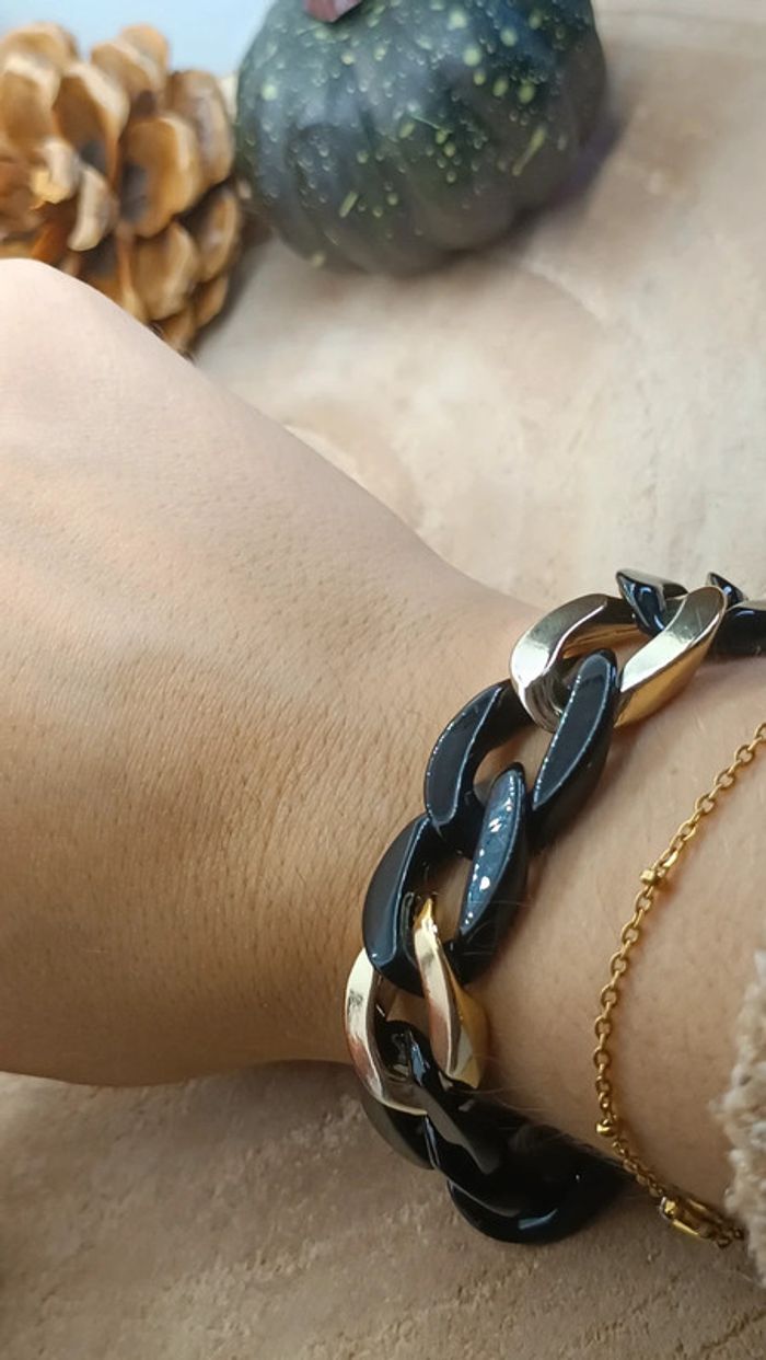 🌞Prix fixes🌞 Bracelet tendance en chaîne maille noir et or Chaînette en acier inoxydable Pour toute demande de lot, m'envoyer un message avec la capture d'écran des articles voulus et je m'en occupe ✨ Envoi rapide et soigné 🤗 Belle découverte ☀️ - Les bijoux en base d'acier inoxydable sont théoriquement résistants à l'eau. Néanmoins, je conseille, pour la durabilité, d'éviter le contact prolongé de vos bijoux fantaisie avec l'eau, le chlore, le parfum, et de les ranger à l'abri du soleil pour une parfaite tenue dans le temps 🤗 - Éviter complètement l'eau pour les bijoux comportant des pierres naturelles, perles de rocailles, acryliques, bois ... - Pour toute question, ou demande, un petit message 🤗 - Abonnez-vous à mon profil vinted pour ne rien louper 👍 #bijouxfantaisie #y2k #cadeaufemme #cadeau #tendance #style #zara #accessoires #acierinoxydable #neuf