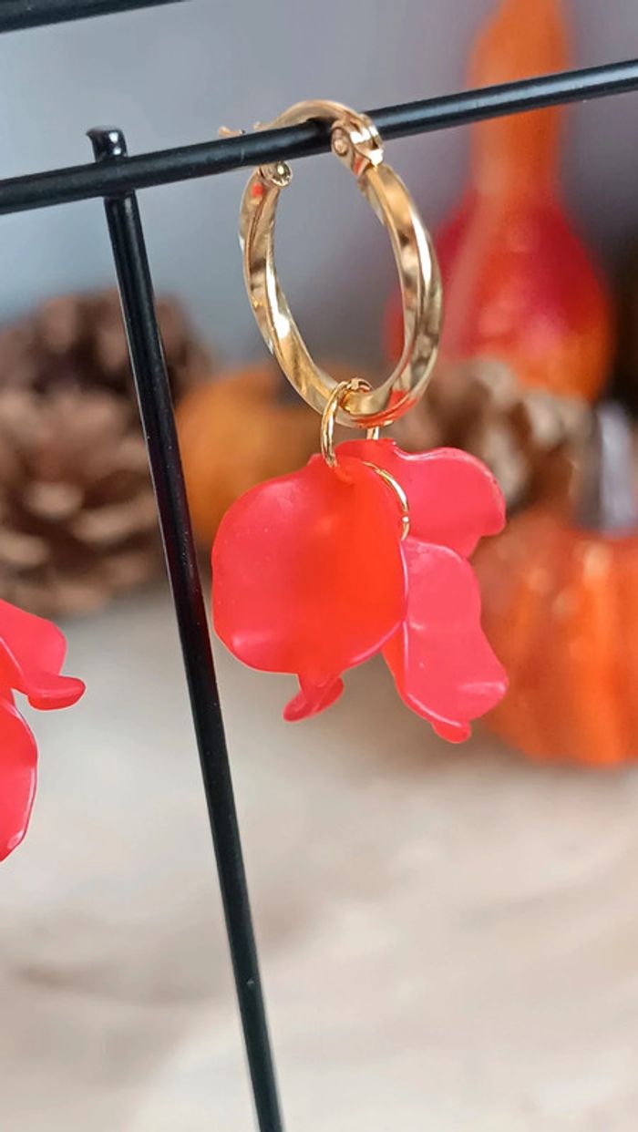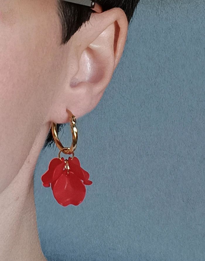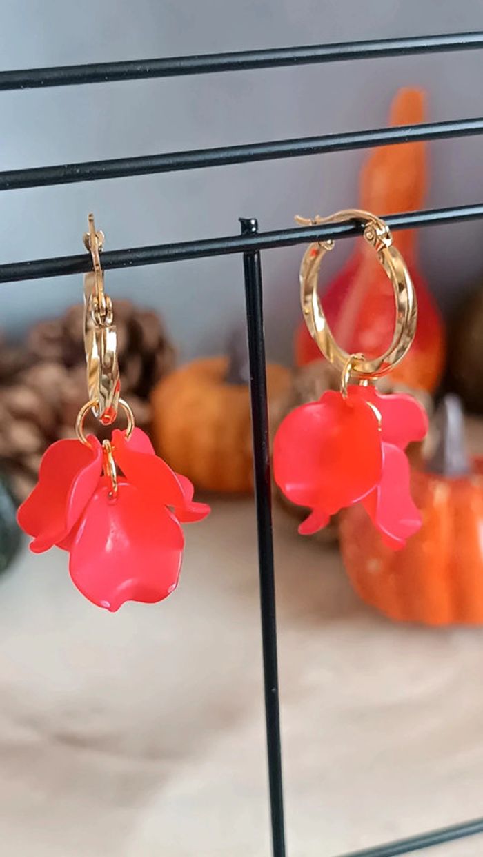 Jolies créoles d'environ 2cm , Fleurs rouges Hyper délicates 🌸 Pour toute demande de lot, m'envoyer un message avec la capture d'écran des articles voulus et je m'en occupe ✨ Envoi rapide et soigné 🤗 Belle découverte ☀️ - Les bijoux en base d'acier inoxydable sont théoriquement résistants à l'eau. Néanmoins, je conseille, pour la durabilité, d'éviter le contact prolongé de vos bijoux fantaisie avec l'eau, le chlore, le parfum, et de les ranger à l'abri du soleil pour une parfaite tenue dans le temps 🤗 - Éviter complètement l'eau pour les bijoux comportant des pierres naturelles, perles de rocailles, acryliques, bois ... - Pour toute question, ou demande, un petit message 🤗 - Abonnez-vous à mon profil vinted pour ne rien louper 👍 #bijouxfantaisie #y2k #cadeaufemme #cadeau #tendance #style #zara #accessoires #acierinoxydable #neuf #inspiration #sézane