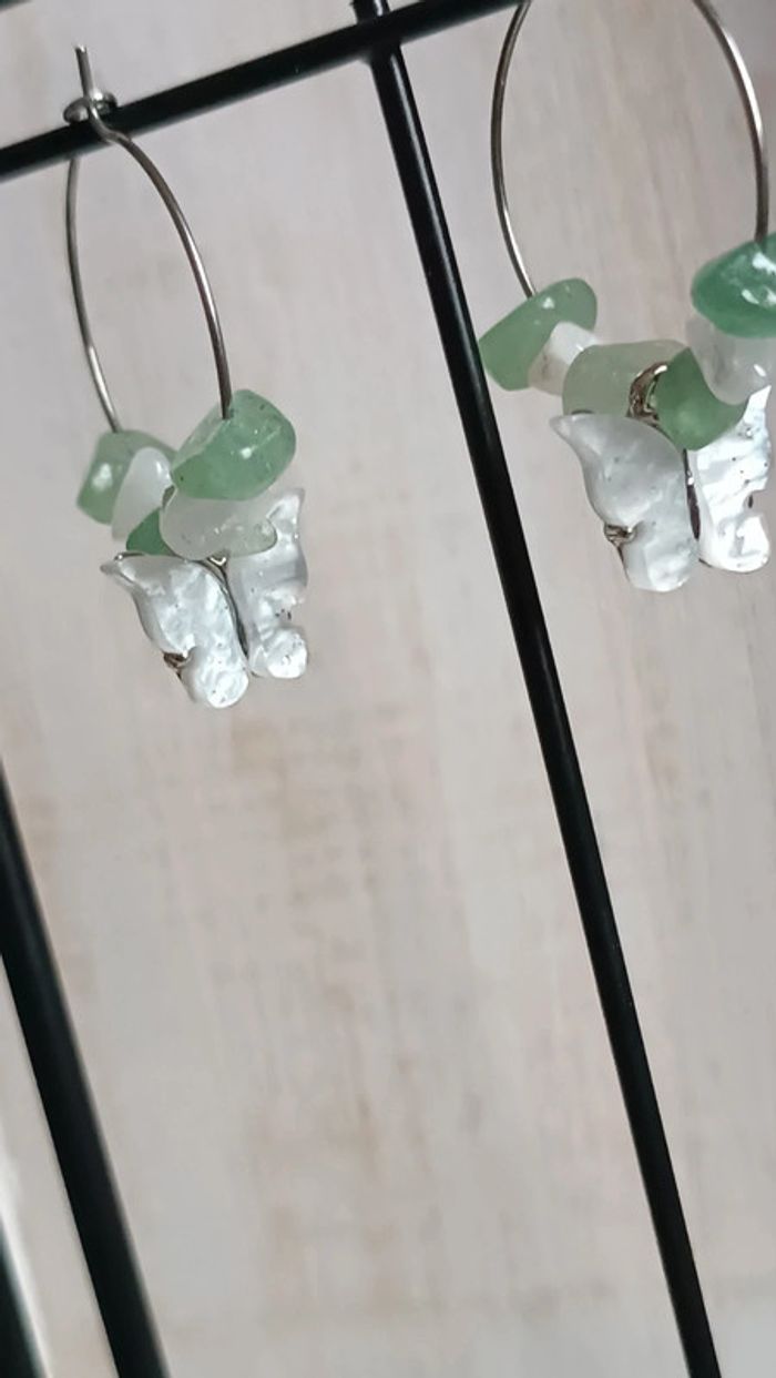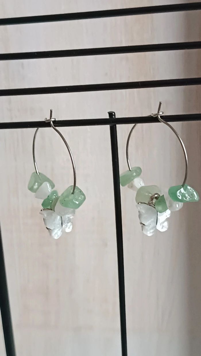 Jolies créoles , chips de pierre naturelle et petit papillon nacré 🦋 Pour toute demande de lot, m'envoyer un message avec la capture d'écran des articles voulus et je m'en occupe ✨ Envoi rapide et soigné 🤗 Belle découverte ☀️ - Les bijoux en base d'acier inoxydable sont théoriquement résistants à l'eau. Néanmoins, je conseille, pour la durabilité, d'éviter le contact prolongé de vos bijoux fantaisie avec l'eau, le chlore, le parfum, et de les ranger à l'abri du soleil pour une parfaite tenue dans le temps 🤗 - Éviter complètement l'eau pour les bijoux comportant des pierres naturelles, perles de rocailles, acryliques, bois ... - Pour toute question, ou demande, un petit message 🤗 - Abonnez-vous à mon profil vinted pour ne rien louper 👍 #bijouxfantaisie #y2k #cadeaufemme #cadeau #tendance #style #zara #accessoires #acierinoxydable #neuf