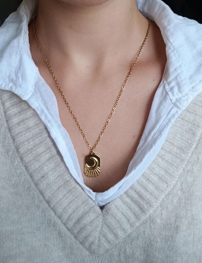 Vendeuse pro, prix fixes , merci 🌸 Collier acier inoxydable et pendentif dog tag avec une lune 🌙 Pour toute demande de lot, m'envoyer un message avec la capture d'écran des articles voulus et je m'en occupe ✨ Envoi rapide et soigné 🤗 Belle découverte ☀️ - Les bijoux en base d'acier inoxydable sont théoriquement résistants à l'eau. Néanmoins, je conseille, pour la durabilité, d'éviter le contact prolongé de vos bijoux fantaisie avec l'eau, le chlore, le parfum, et de les ranger à l'abri du soleil pour une parfaite tenue dans le temps 🤗 - Éviter complètement l'eau pour les bijoux comportant des pierres naturelles, perles de rocailles, acryliques, bois ... - Pour toute question, ou demande, un petit message 🤗 - Abonnez-vous à mon profil vinted pour ne rien louper 👍 #bijoux #bijouxfantaisie #bijouxfemme #bijouxhomme #bracelethomme #cadeaufemme #cadeau #bouclesdoreilles #braceletfemme #colierfemme #tendance #intemporel #style #accessoires #pierrenaturelle #acierinoxydable #neuf