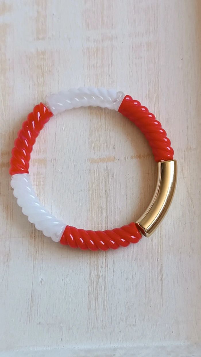 Bracelet tube acrylique, rouge doré et blanc Fait avec ❤️ Vendeuse pro, prix fixes 💫 Pour toute demande de lot, m'envoyer un message avec la capture d'écran des articles voulus et je m'en occupe ✨ Envoi rapide et soigné 🤗 Belle découverte ☀️ - Les bijoux en base d'acier inoxydable sont théoriquement résistants à l'eau. Néanmoins, je conseille, pour la durabilité, d'éviter le contact prolongé de vos bijoux fantaisie avec l'eau, le chlore, le parfum, et de les ranger à l'abri du soleil pour une parfaite tenue dans le temps 🤗 - Éviter complètement l'eau pour les bijoux comportant des pierres naturelles, perles de rocailles, acryliques, bois ... - Pour toute question, ou demande, un petit message 🤗 - Abonnez-vous à mon profil vinted pour ne rien louper 👍 #bijoux #bijouxfantaisie #bijouxfemme #bijouxhomme #bracelethomme #cadeaufemme #cadeau #bouclesdoreilles #braceletfemme #colierfemme #tendance #intemporel #style #accessoires #pierrenaturelle #acierinoxydable #neuf