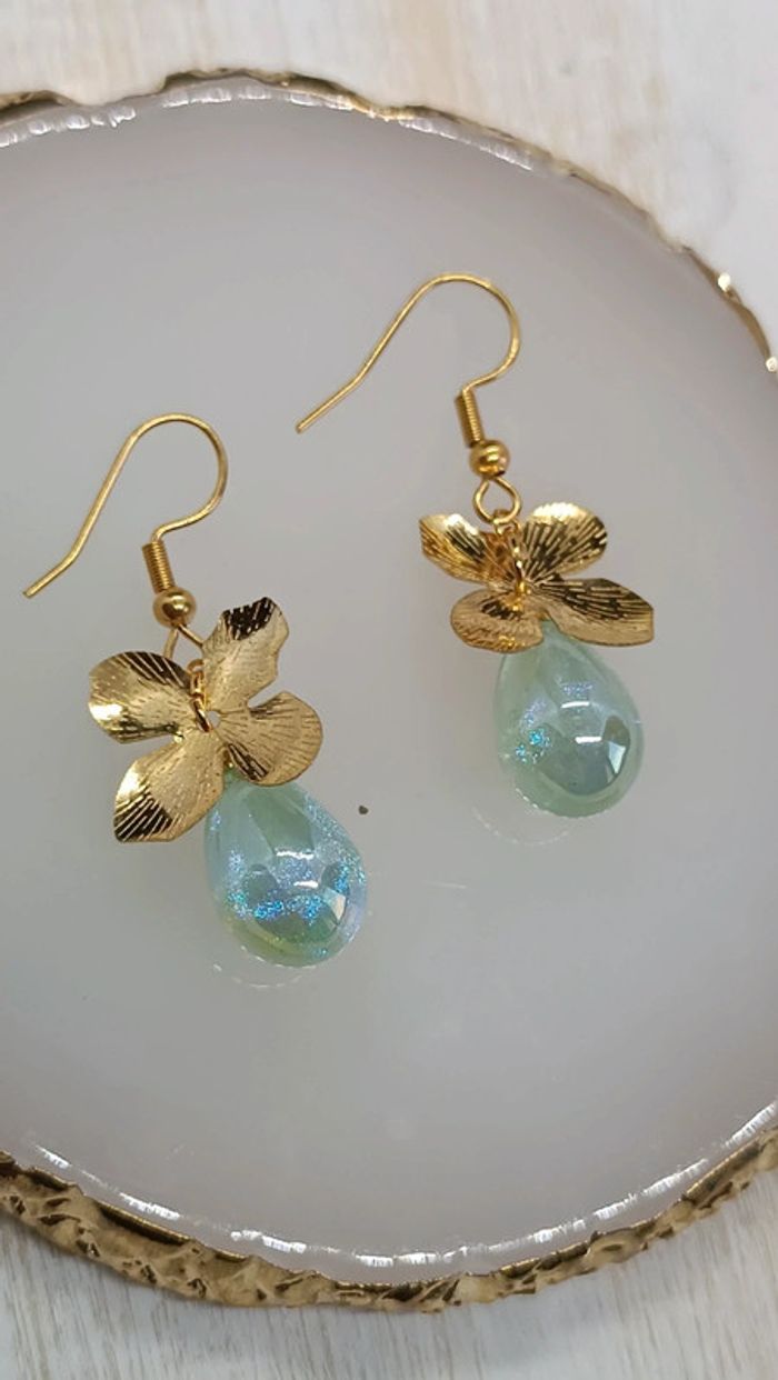 Jolies boucles d'oreilles Pendentif en acrylique holographiques vert d'eau , petites fleurs en métal doré et crochet en acier inoxydable 🥰 Fait avec ❤️ Vendeuse pro, prix fixes 💫 Pour toute demande de lot, m'envoyer un message avec la capture d'écran des articles voulus et je m'en occupe ✨ Envoi rapide et soigné 🤗 Belle découverte ☀️ - Les bijoux en base d'acier inoxydable sont théoriquement résistants à l'eau. Néanmoins, je conseille, pour la durabilité, d'éviter le contact prolongé de vos bijoux fantaisie avec l'eau, le chlore, le parfum, et de les ranger à l'abri du soleil pour une parfaite tenue dans le temps 🤗 - Éviter complètement l'eau pour les bijoux comportant des pierres naturelles, perles de rocailles, acryliques, bois ... - Pour toute question, ou demande, un petit message 🤗 - Abonnez-vous à mon profil vinted pour ne rien louper 👍 #bijoux #bijouxfantaisie #bijouxfemme #bijouxhomme #bracelethomme #cadeaufemme #cadeau #bouclesdoreilles #braceletfemme #colierfemme #tendance #intemporel #style #accessoires #pierrenaturelle #acierinoxydable #neuf