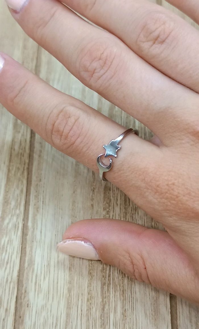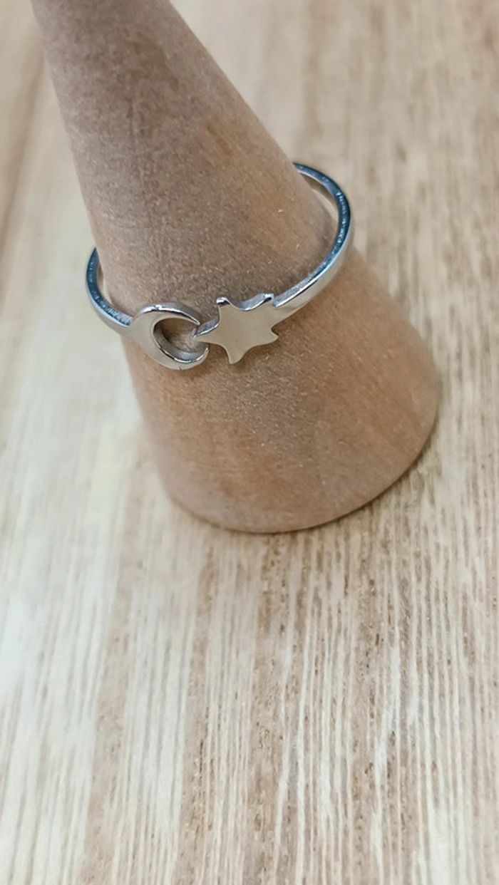 Bague acier inoxydable lune et étoile argenté - photo numéro 1