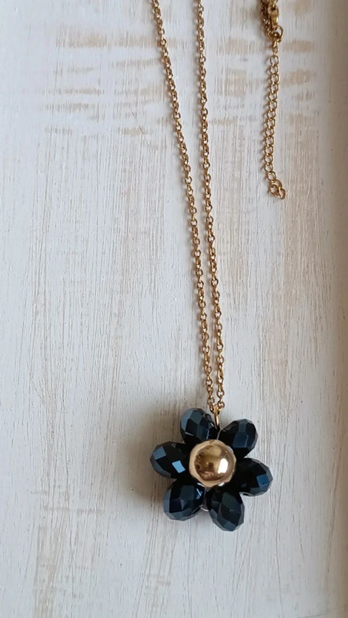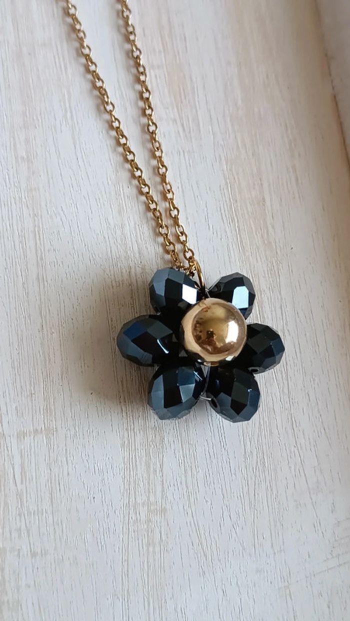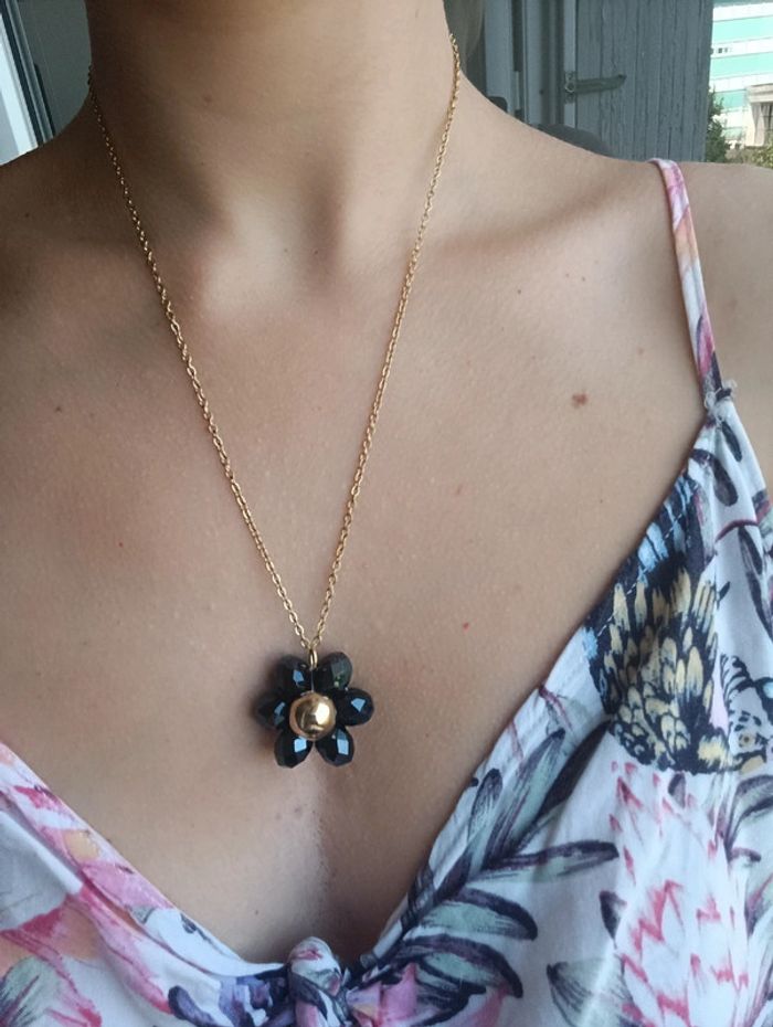 Joli collier avec fleur en grosses perles a facettes noire et perle centrale dorée Chaine acier inoxydable Fait avec ❤️ Vendeuse pro, prix fixes 💫 Pour toute demande de lot, m'envoyer un message avec la capture d'écran des articles voulus et je m'en occupe ✨ Envoi rapide et soigné 🤗 Belle découverte ☀️ - Les bijoux en base d'acier inoxydable sont théoriquement résistants à l'eau. Néanmoins, je conseille, pour la durabilité, d'éviter le contact prolongé de vos bijoux fantaisie avec l'eau, le chlore, le parfum, et de les ranger à l'abri du soleil pour une parfaite tenue dans le temps 🤗 - Éviter complètement l'eau pour les bijoux comportant des pierres naturelles, perles de rocailles, acryliques, bois ... - Pour toute question, ou demande, un petit message 🤗 - Abonnez-vous à mon profil vinted pour ne rien louper 👍 #bijoux #bijouxfantaisie #bijouxfemme #bijouxhomme #bracelethomme #cadeaufemme #cadeau #bouclesdoreilles #braceletfemme #colierfemme #tendance #intemporel #style #accessoires #pierrenaturelle #acierinoxydable #neuf