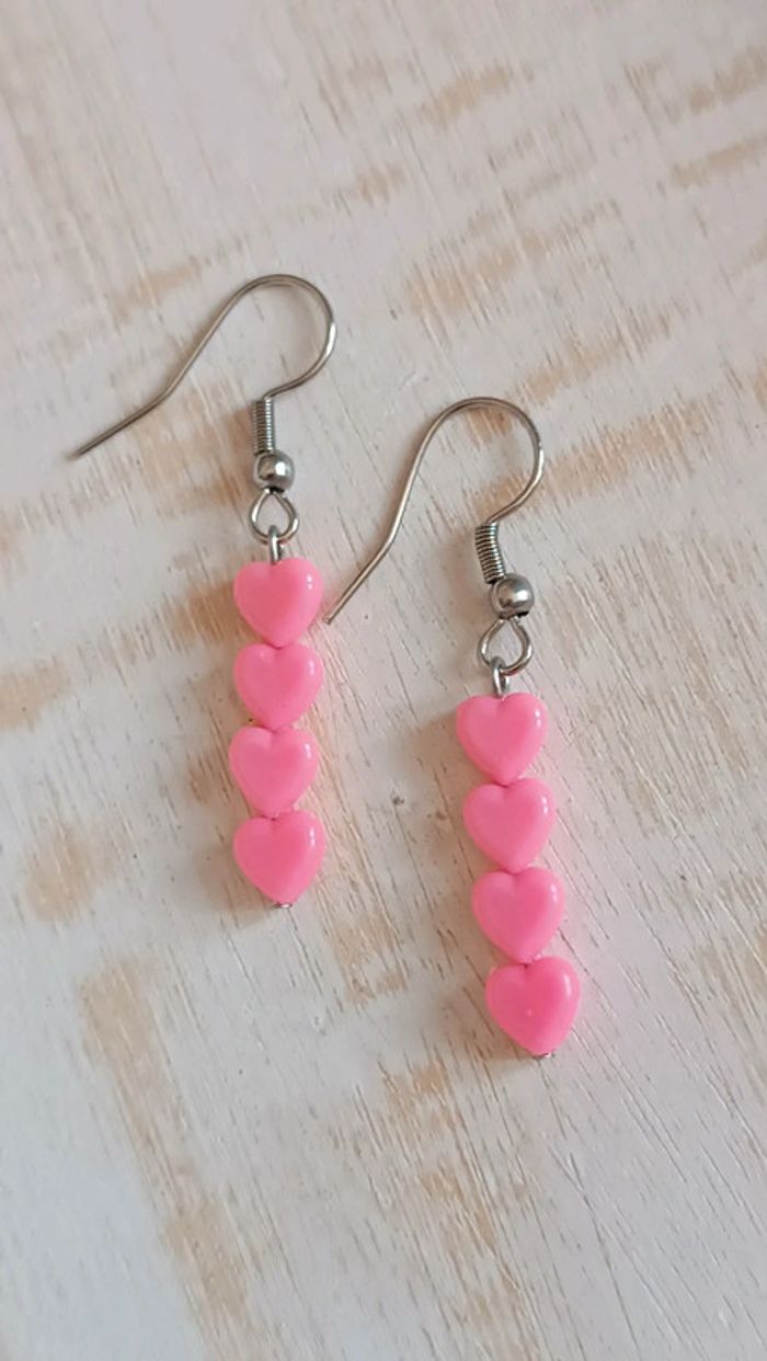 Petites boucles coeur roses fushia Crochet en acier inoxydable Enfant ado ou adultes 🌸 Fait avec ❤️ Vendeuse pro, prix fixes 💫 Pour toute demande de lot, m'envoyer un message avec la capture d'écran des articles voulus et je m'en occupe ✨ Envoi rapide et soigné 🤗 Belle découverte ☀️ - Les bijoux en base d'acier inoxydable sont théoriquement résistants à l'eau. Néanmoins, je conseille, pour la durabilité, d'éviter le contact prolongé de vos bijoux fantaisie avec l'eau, le chlore, le parfum, et de les ranger à l'abri du soleil pour une parfaite tenue dans le temps 🤗 - Éviter complètement l'eau pour les bijoux comportant des pierres naturelles, perles de rocailles, acryliques, bois ... - Pour toute question, ou demande, un petit message 🤗 - Abonnez-vous à mon profil vinted pour ne rien louper 👍 #bijoux #bijouxfantaisie #bijouxfemme #bijouxhomme #bracelethomme #cadeaufemme #cadeau #bouclesdoreilles #braceletfemme #colierfemme #tendance #intemporel #style #accessoires #pierrenaturelle #acierinoxydable #neuf