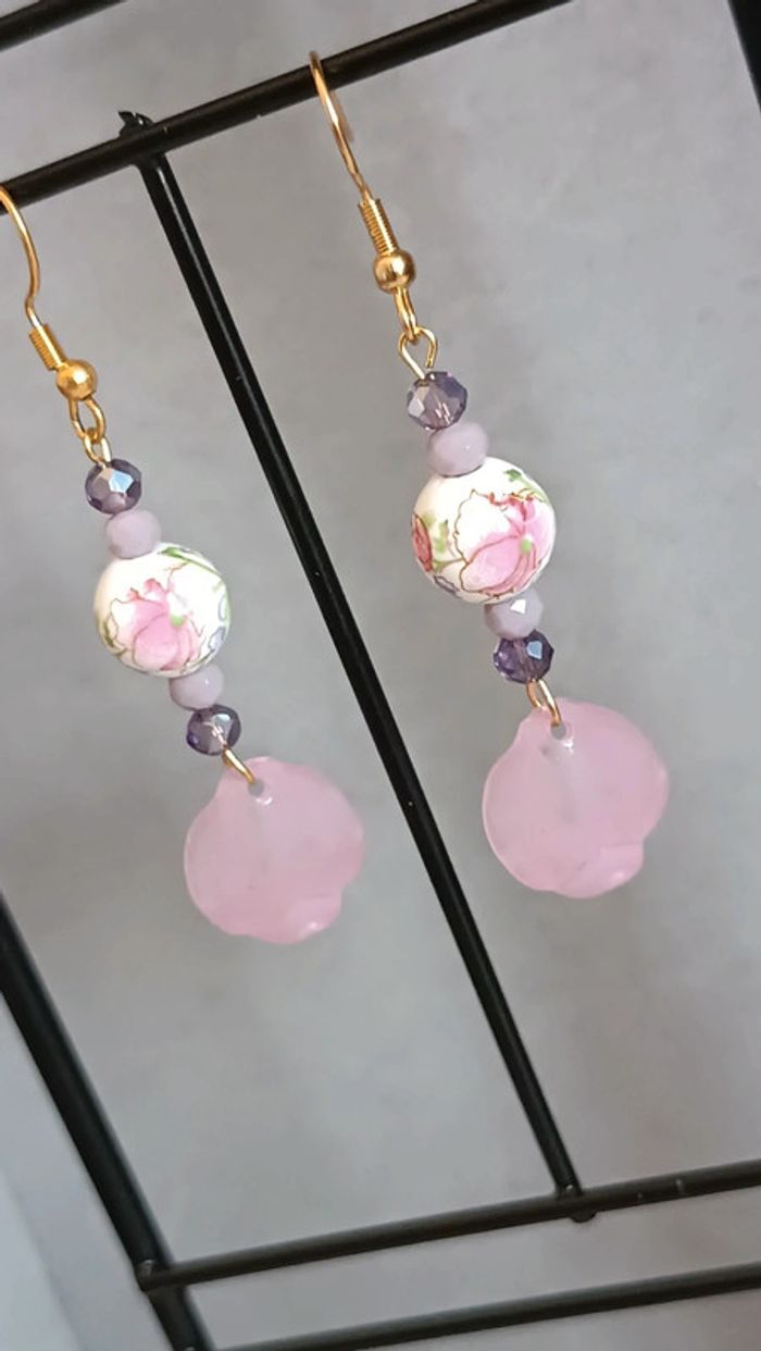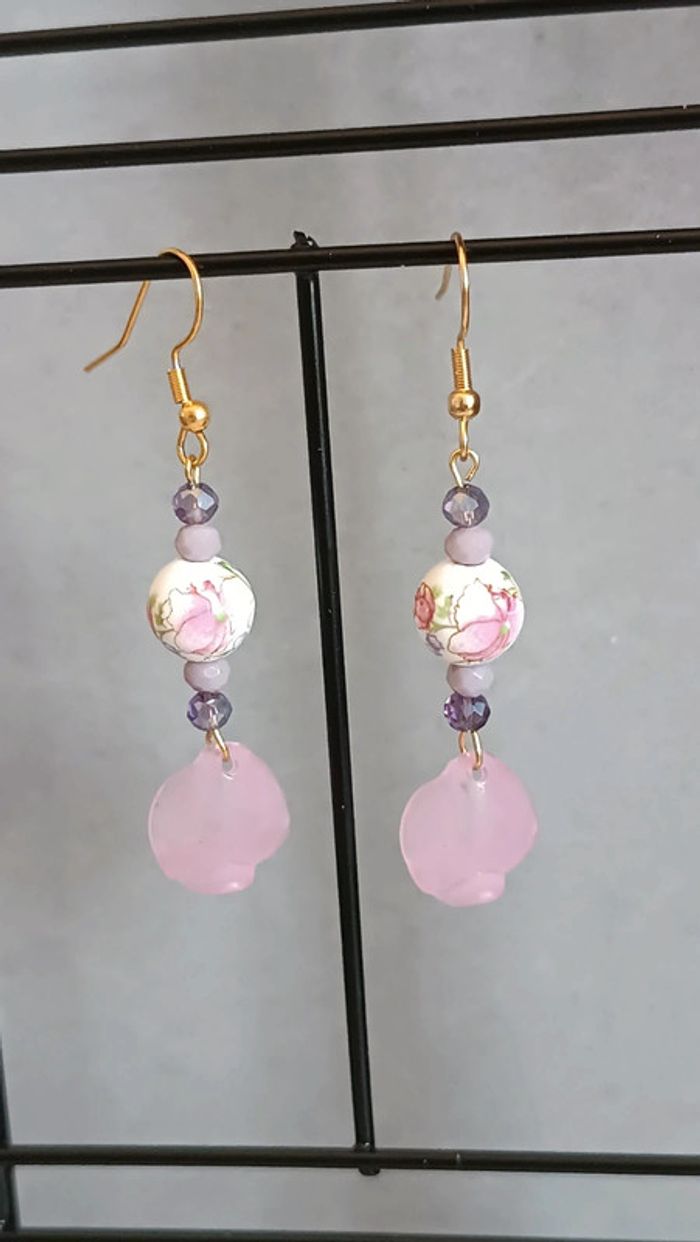 Jolie paire de boucles d'oreilles , crochet en plaquê or , perles roses et violettes et petits pétales 🌸 Fait avec ❤️ Vendeuse pro, prix fixes 💫 Pour toute demande de lot, m'envoyer un message avec la capture d'écran des articles voulus et je m'en occupe ✨ Envoi rapide et soigné 🤗 Belle découverte ☀️ - Les bijoux en base d'acier inoxydable sont théoriquement résistants à l'eau. Néanmoins, je conseille, pour la durabilité, d'éviter le contact prolongé de vos bijoux fantaisie avec l'eau, le chlore, le parfum, et de les ranger à l'abri du soleil pour une parfaite tenue dans le temps 🤗 - Éviter complètement l'eau pour les bijoux comportant des pierres naturelles, perles de rocailles, acryliques, bois ... - Pour toute question, ou demande, un petit message 🤗 - Abonnez-vous à mon profil vinted pour ne rien louper 👍 #bijoux #bijouxfantaisie #bijouxfemme #bijouxhomme #bracelethomme #cadeaufemme #cadeau #bouclesdoreilles #braceletfemme #colierfemme #tendance #intemporel #style #accessoires #pierrenaturelle #acierinoxydable #neuf