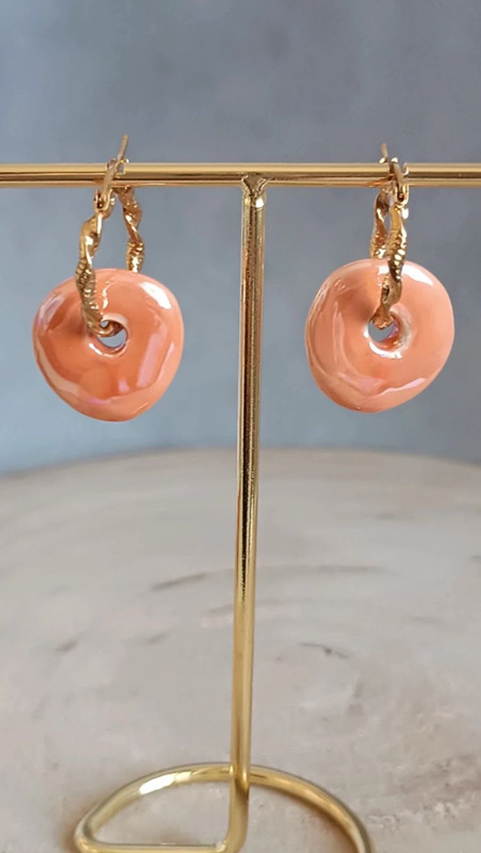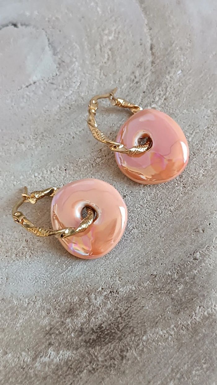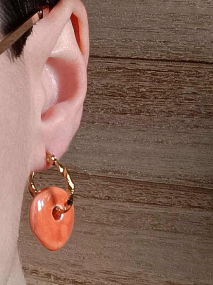 Superbe paire de créoles en acier inoxydable, argenté, ornées de donuts en céramique grecque dans les tons orange pêche Les perles en céramiques sont faites à la main en Grèce , sont donc uniques et peuvent présenter quelques imperfections, ce qui fait leurs charme 🤗 Vendeuse pro, prix fixes 💫 Pour toute demande de lot, m'envoyer un message avec la capture d'écran des articles voulus et je m'en occupe ✨ Envoi rapide et soigné 🤗 Belle découverte ☀️ - Les bijoux en base d'acier inoxydable sont théoriquement résistants à l'eau. Néanmoins, je conseille, pour la durabilité, d'éviter le contact prolongé de vos bijoux fantaisie avec l'eau, le chlore, le parfum, et de les ranger à l'abri du soleil pour une parfaite tenue dans le temps 🤗 - Éviter complètement l'eau pour les bijoux comportant des pierres naturelles, perles de rocailles, acryliques, bois ... - Pour toute question, ou demande, un petit message 🤗 - Abonnez-vous à mon profil vinted pour ne rien louper 👍 #bijoux #bijouxfantaisie #bijouxfemme #bijouxhomme #bracelethomme #cadeaufemme #cadeau #bouclesdoreilles #braceletfemme #colierfemme #tendance #intemporel #style #accessoires #pierrenaturelle #acierinoxydable #neuf