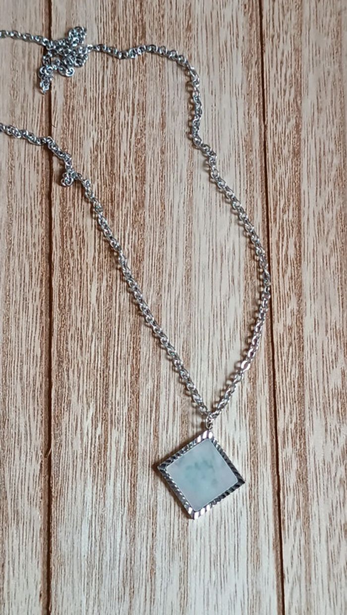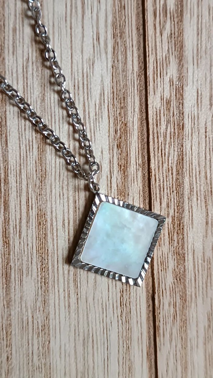 Joli collier en acier inoxydable, argenté avec pendentif en nacre Fait avec ❤️ Vendeuse pro, prix fixes 💫 Pour toute demande de lot, m'envoyer un message avec la capture d'écran des articles voulus et je m'en occupe ✨ Envoi rapide et soigné 🤗 Belle découverte ☀️ - Les bijoux en base d'acier inoxydable sont théoriquement résistants à l'eau. Néanmoins, je conseille, pour la durabilité, d'éviter le contact prolongé de vos bijoux fantaisie avec l'eau, le chlore, le parfum, et de les ranger à l'abri du soleil pour une parfaite tenue dans le temps 🤗 - Éviter complètement l'eau pour les bijoux comportant des pierres naturelles, perles de rocailles, acryliques, bois ... - Pour toute question, ou demande, un petit message 🤗 - Abonnez-vous à mon profil vinted pour ne rien louper 👍 #bijoux #bijouxfantaisie #bijouxfemme #bijouxhomme #bracelethomme #cadeaufemme #cadeau #bouclesdoreilles #braceletfemme #colierfemme #tendance #intemporel #style #accessoires #pierrenaturelle #acierinoxydable #neuf