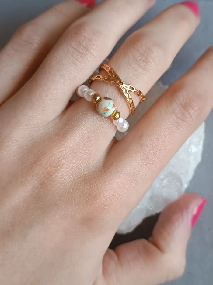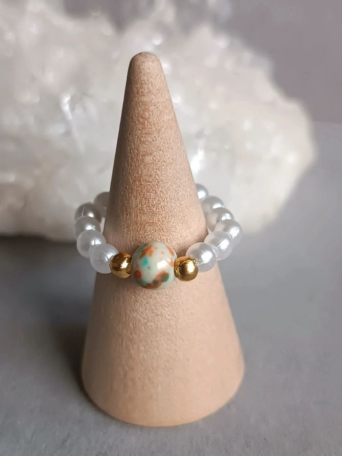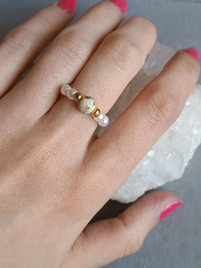 Petite bague en perles et pierre naturelle - photo numéro 1