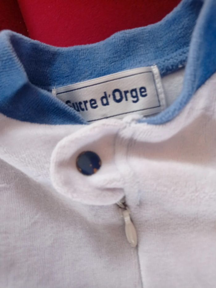 Tout doux. C'est du 6 mois. Sucre d'orge. Bleu et blanc. S'ouvre sur le devant