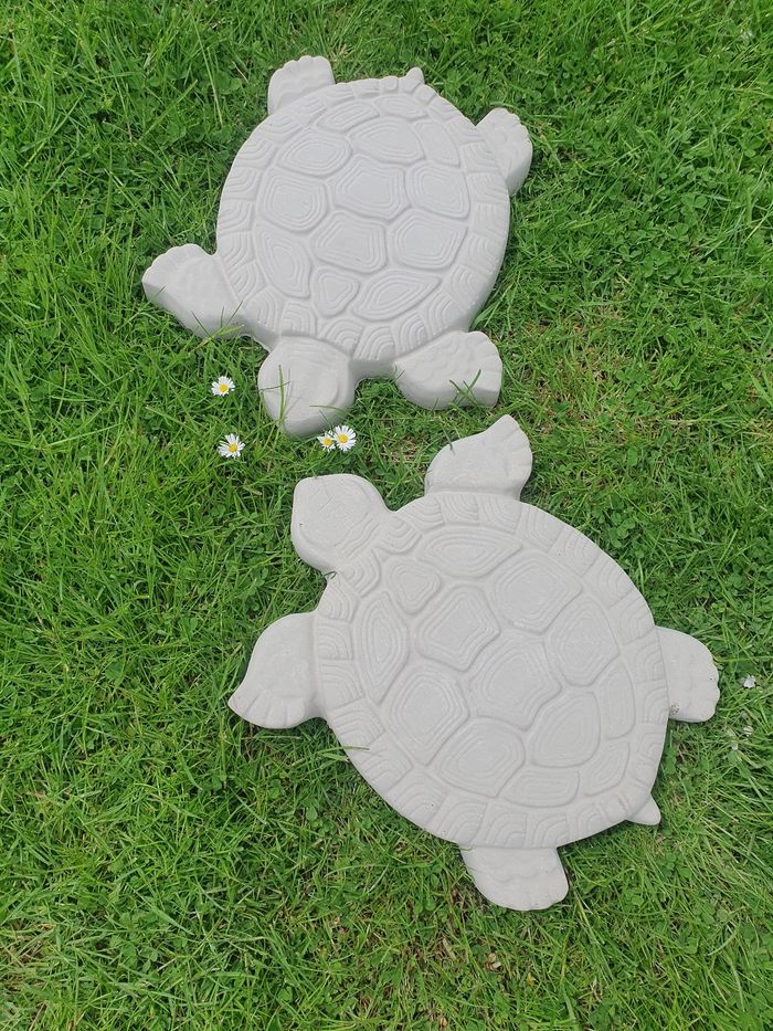 Décoration tortues x 2 neuf On peut s'en servir de dalle ou de Décoration Resiste au gel longueur :40cm largeur : 34cm Épaisseur : 3,5cm Poids : 6 kg l'unité