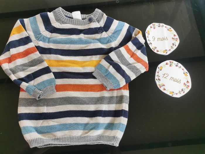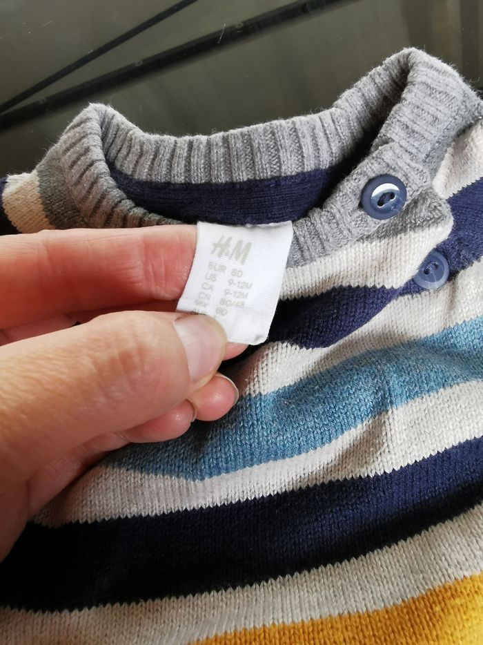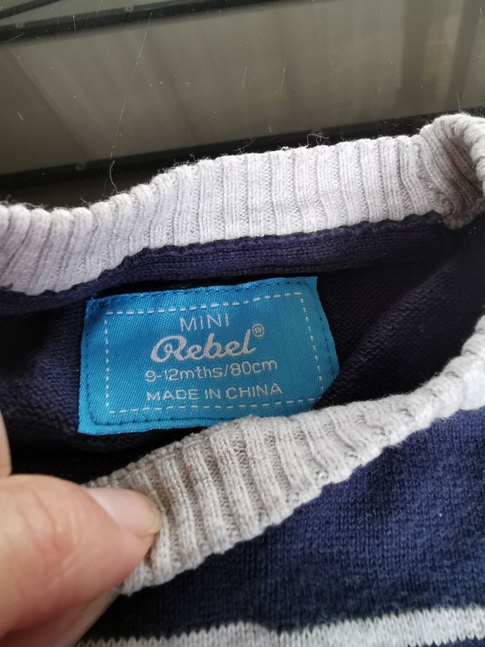 Lot de 2 pull à rayures bébé garçon 9/12mois H&M et mini rebell - photo numéro 7