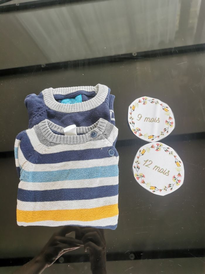 Lot de 2 pull à rayures bébé garçon 9/12mois H&M et mini rebell